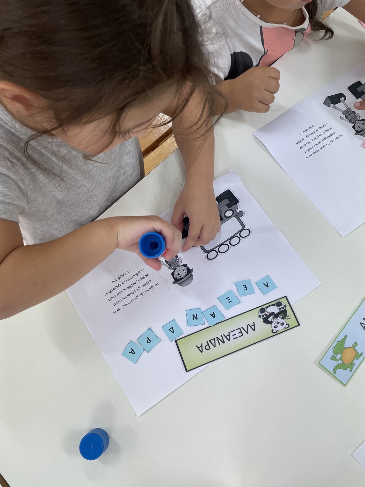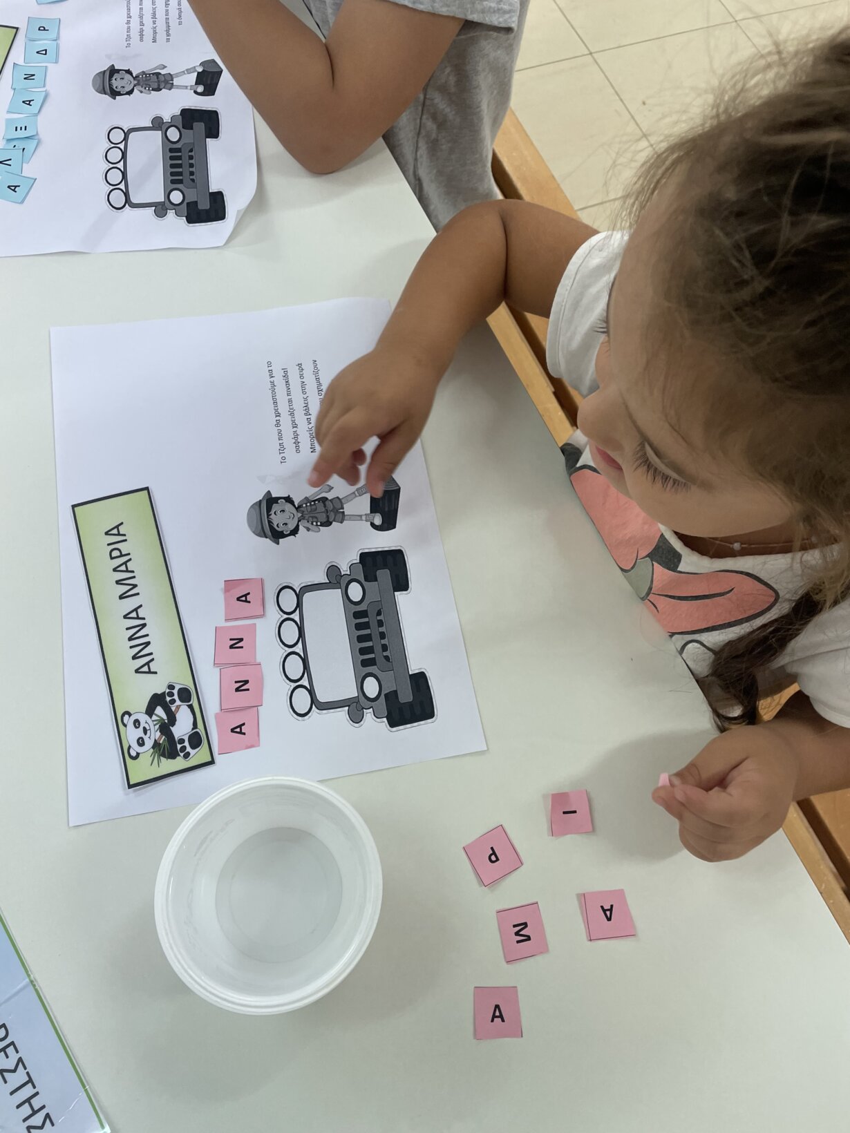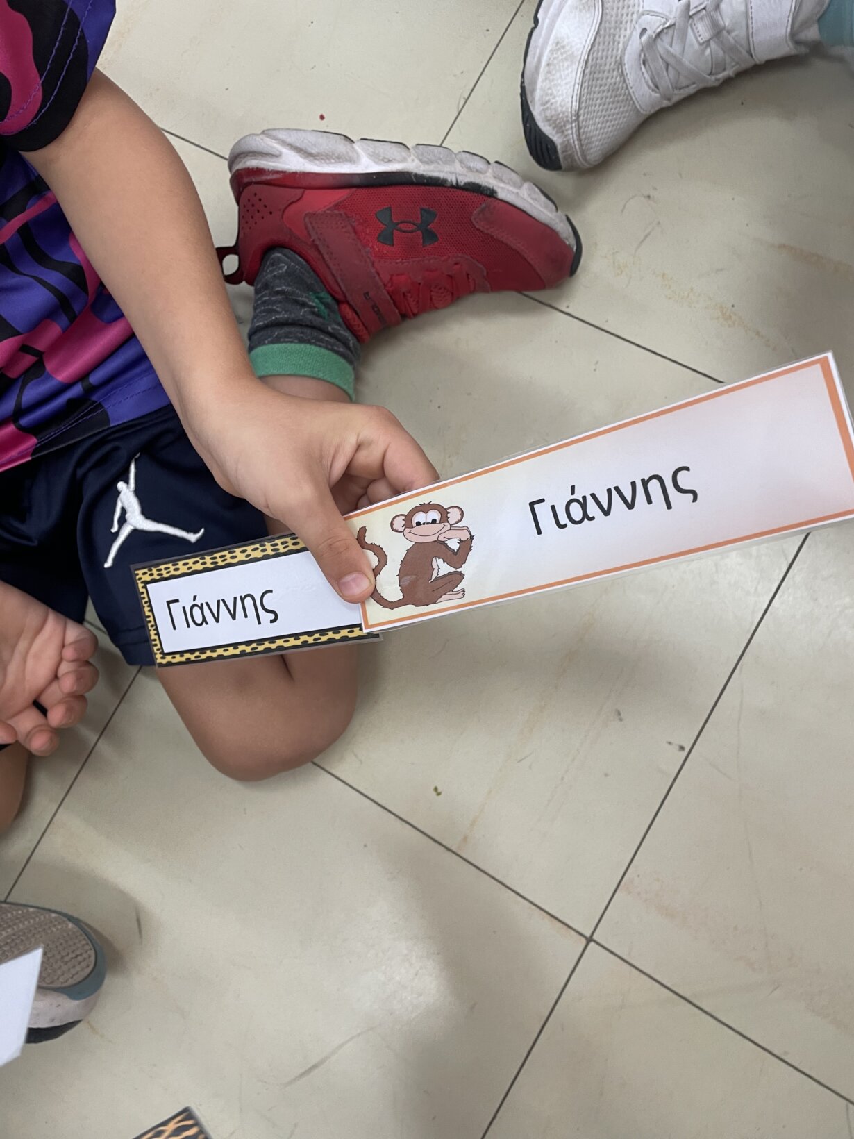 Αφού παίξαμε και μάθαμε να αναγνωρίζουμε το αρχικό μας γράμμα, το γράμμα αρχηγό, ήρθε η σειρά να μάθουμε να αναγνωρίζουμε ολόκληρο το όνομα μας. Πολλά τα παιδιά φέτος με το ίδιο αρχικό γράμμα Αλέξανδρος, Αλεξάνδρα, Άννα Μαρία, Αντρέα, Ανδρέα, Άγγελος, Αγγελική……