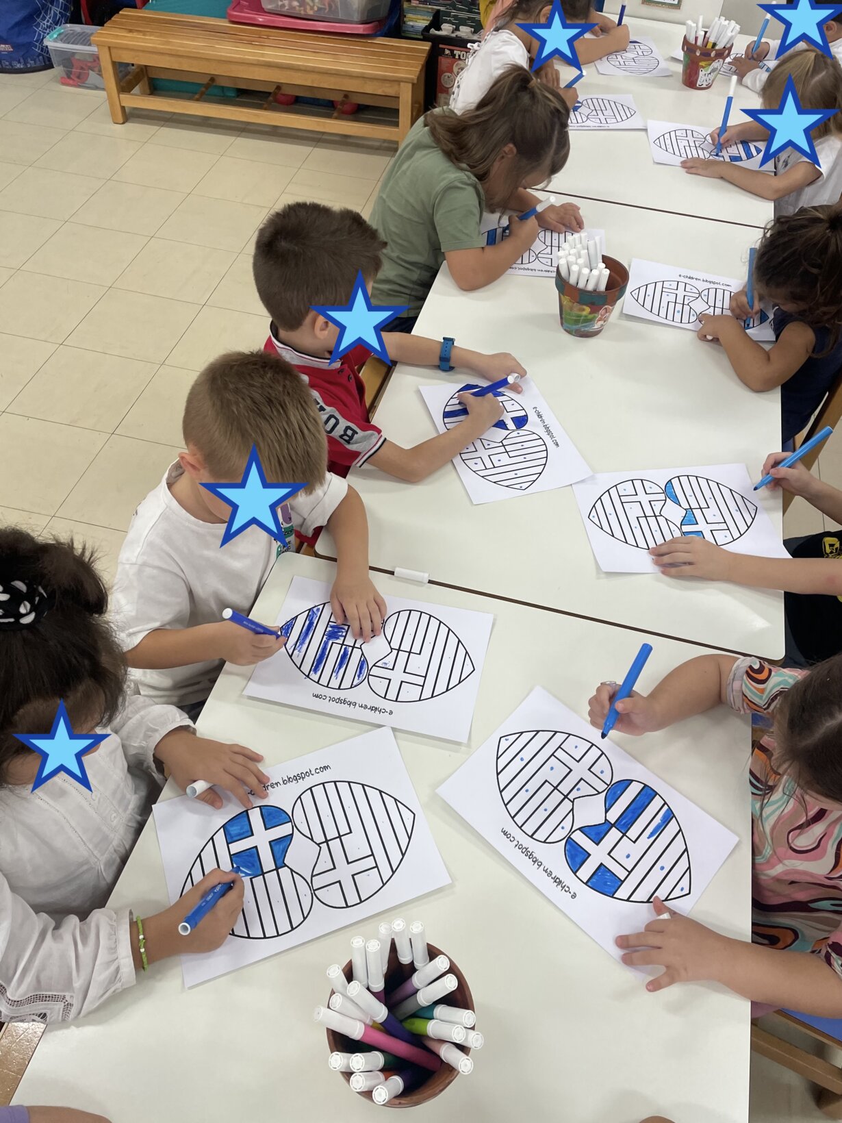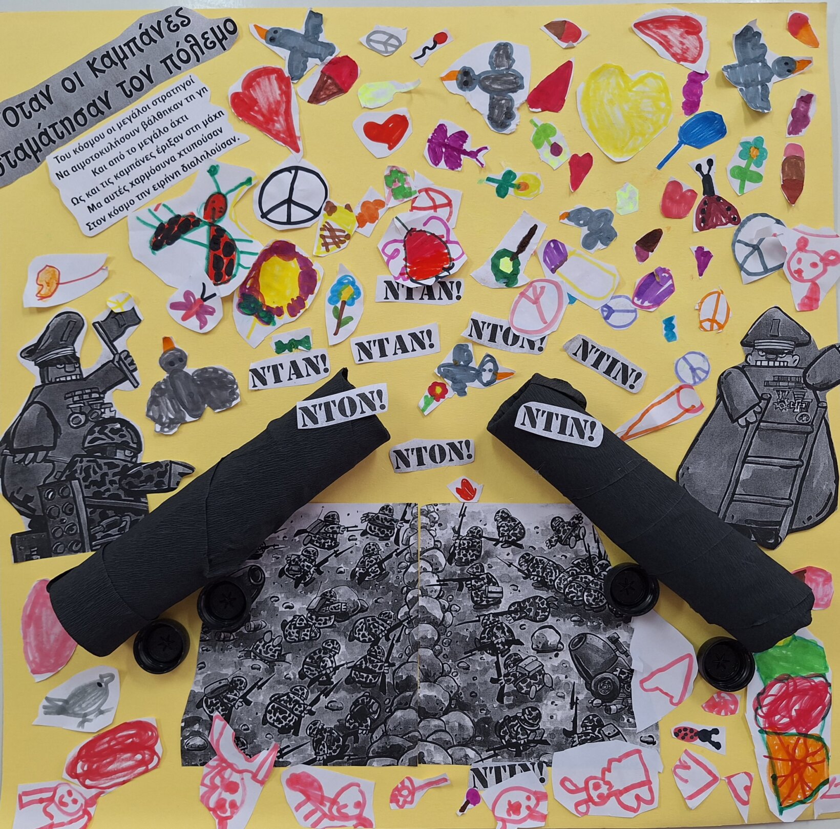 Τα παιδιά του Ολοήμερου τμήματος έφτιαξαν μια ομαδική εργασία με αφορμή το παραμύθι “Όταν οι καμπάνες σταμάτησαν τον πόλεμο.” του Gianni Rodari, που είχαν διαβάσει προηγουμένως.