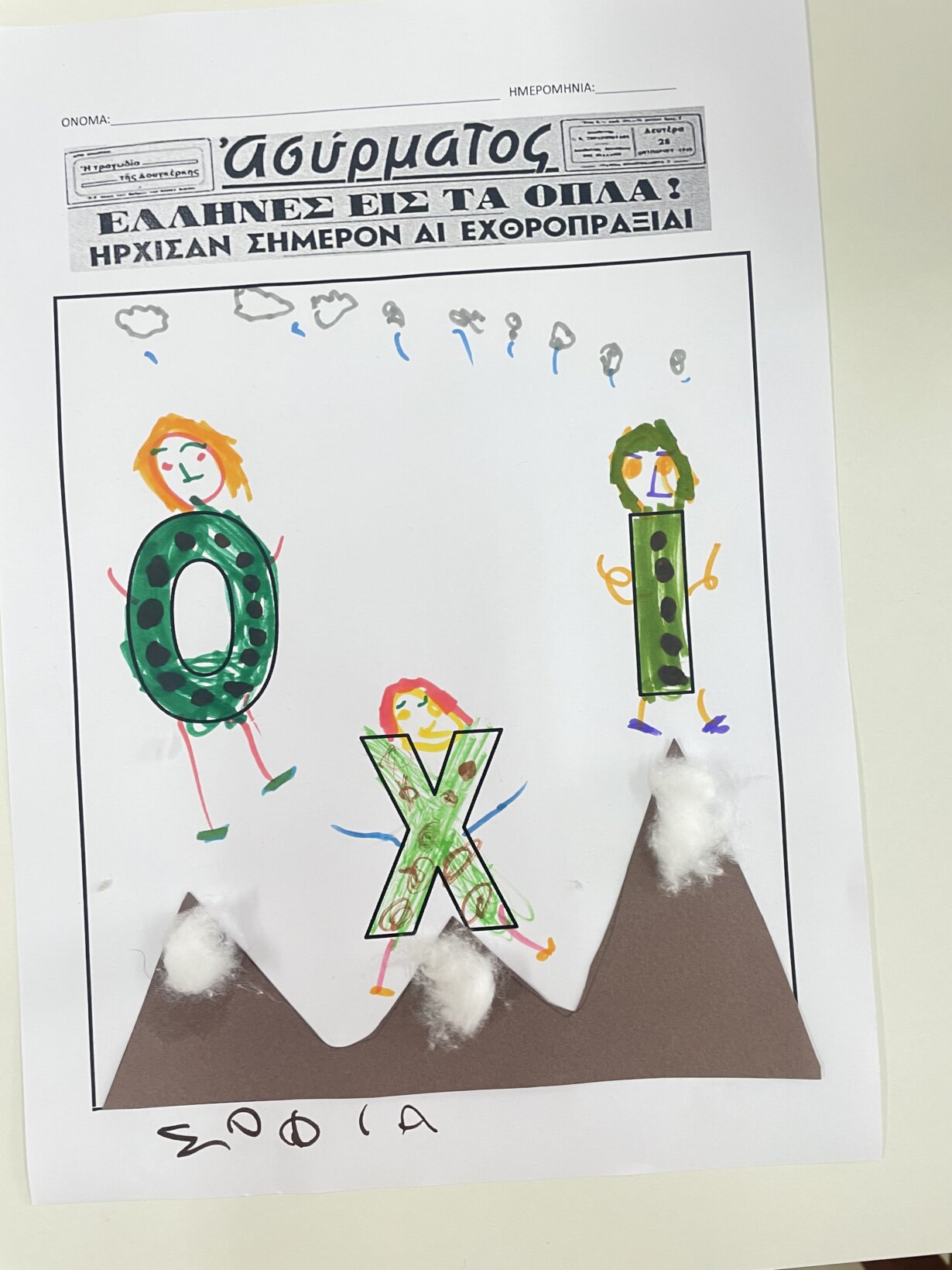 Το διαβάσαμε και ακούσαμε τα τραγούδια του. Στη συνέχεια θυμηθήκαμε τα γεγονότα της 28ης Οκτωβρίου 1940 και δουλέψαμε σχετικό φύλλο εργασίας.