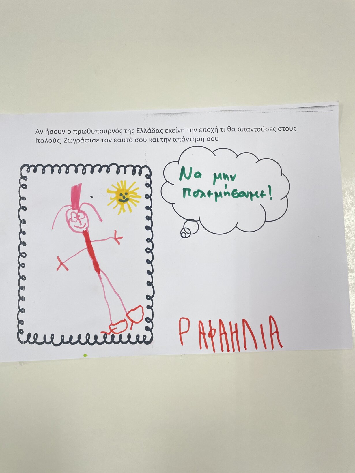 ” Αν ήσουν ο Πρωθυπουργός της Ελλάδας εκείνη την εποχή, τι θα απαντούσες στους Ιταλούς;”