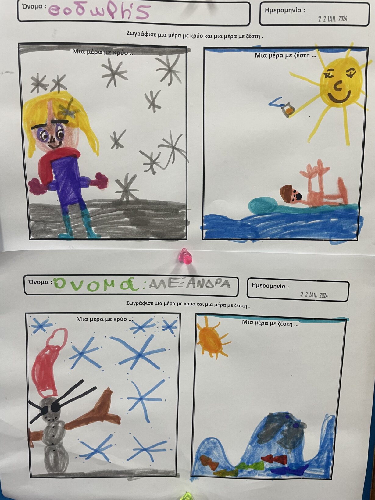 Ζωγραφίσαμε πως θα ήταν μια μέρα με κρύο και μια μέρα με ζέστη