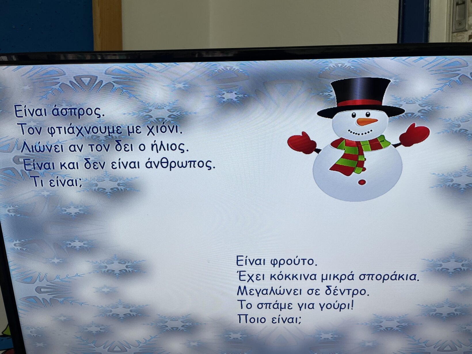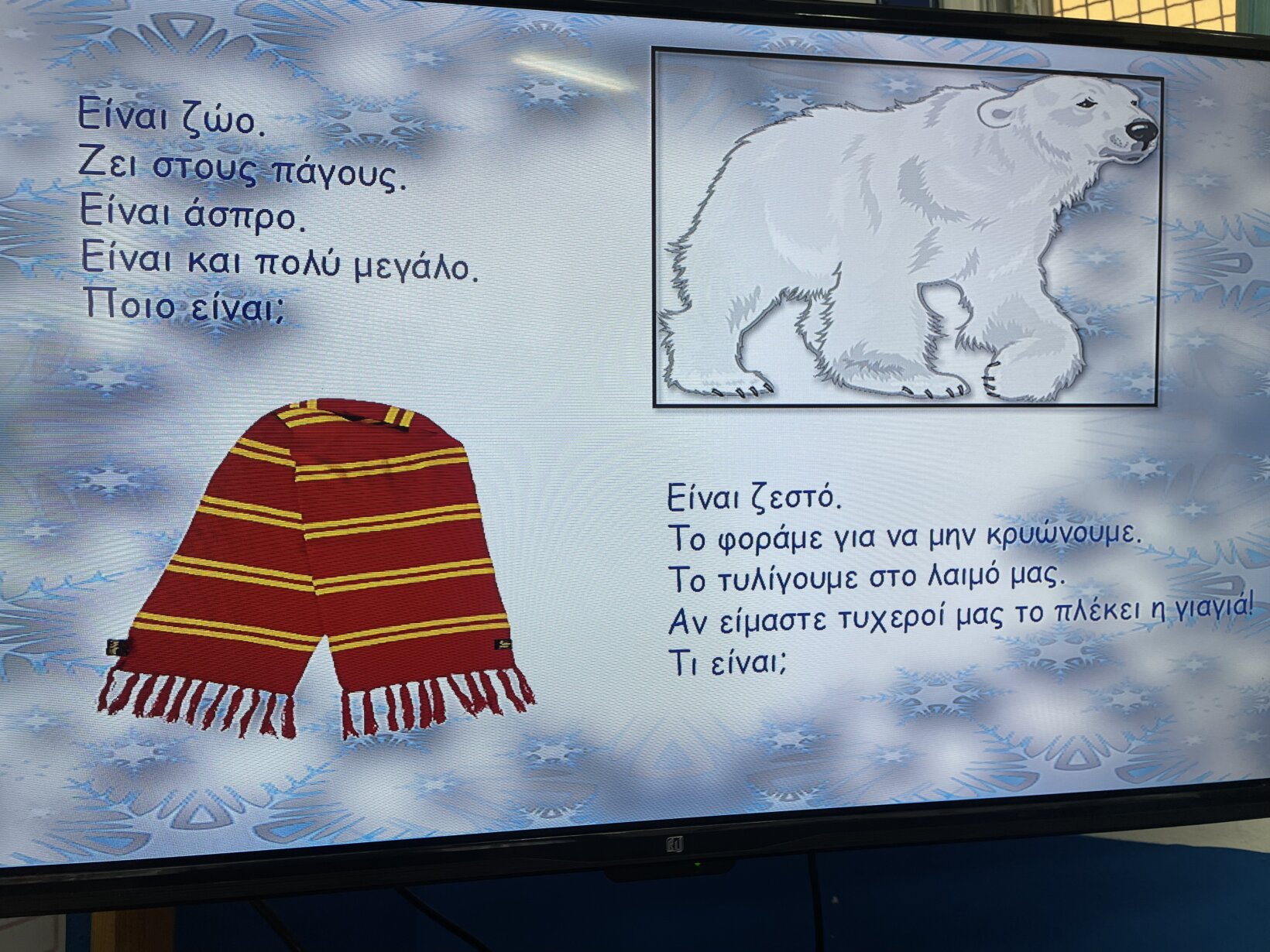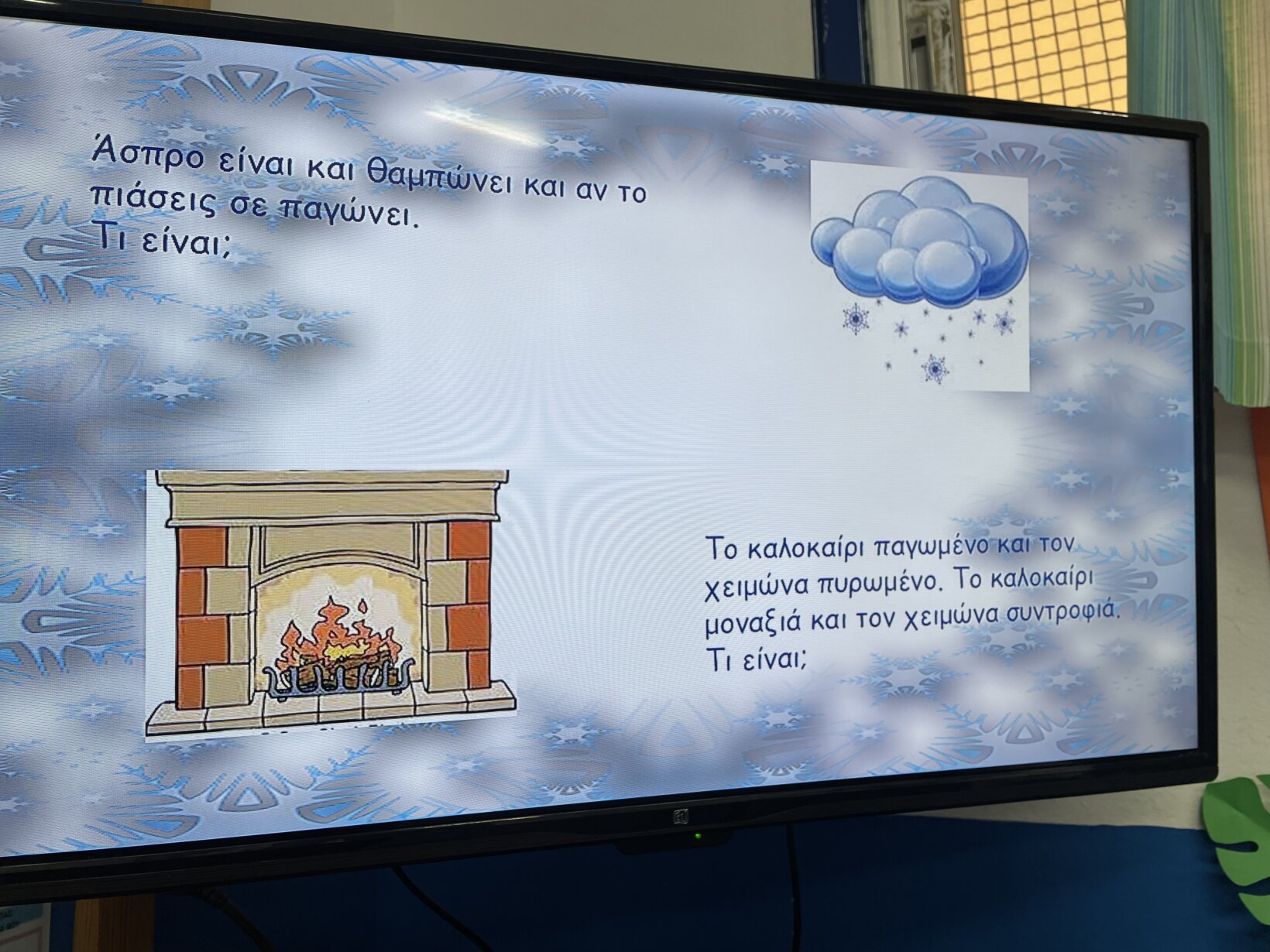 Αλλά και μάθαμε για τα γραμματάκια που φωνάζουν δυνατά, τα φωνήεντα, μέσα από το τραγουδάκι του Χειμώνα.