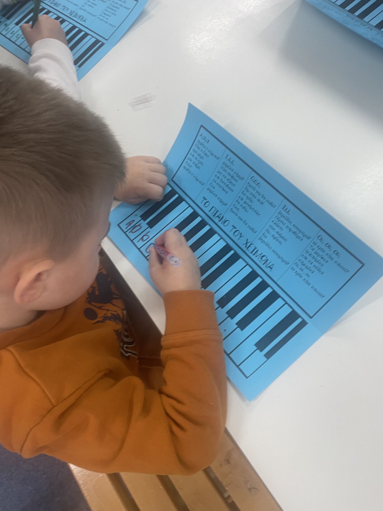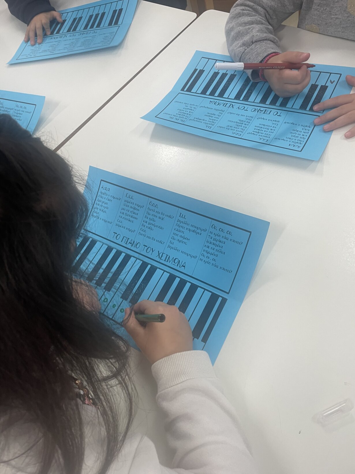 Φτιάξαμε τα πιάνα των φωνηέντων για να παίξουμε το τραγούδι του χειμώνα
