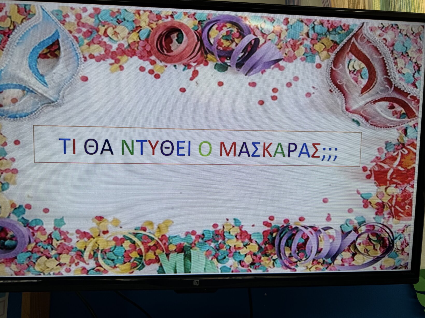 Διερευνώντας τις πρότερες γνώσεις των παιδιών για τις Απόκριες ξεκινήσαμε μια από τις πιο αγαπημένες θεματικές των παιδιών. Μιλήσαμε για τις Απόκριες…… είπαμε τι συμβαίνει αυτή την περιόδο, τι είναι το καρναβάλι, σε ποια άλλα μέρη γίνονται καρναβαλικές παρελάσεις, γνωρίσαμε το καρναβάλι της Βενετίας και του Ρίο Ντε Τζανέιρο, μιλήσαμε για τα έθιμα της αποκριάς σε διάφορα μέρη της Ελλάδας ……….. παίξαμε πολλά παιχνίδια, χορέψαμε και φτιάξαμε υπέροχες κατασκευές!!!!!!!