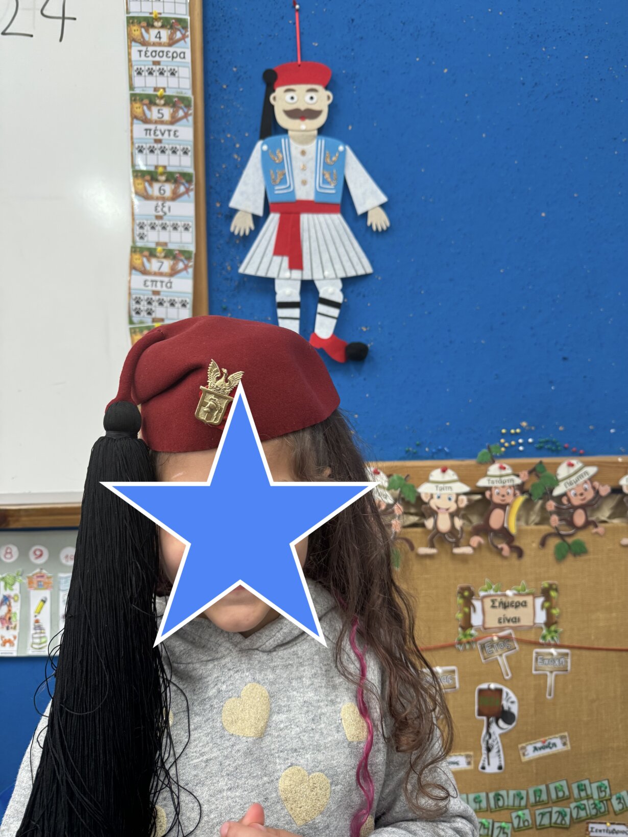 - Μιλήσαμε για τα ρούχα των ευζώνων και τα συγκρίναμε με τα δικά μας. Είδαμε από κοντά τα τσαρούχια και τον φάριο (το καπέλο του εύζωνα) και διατυπώσαμε τις εντυπώσεις μας