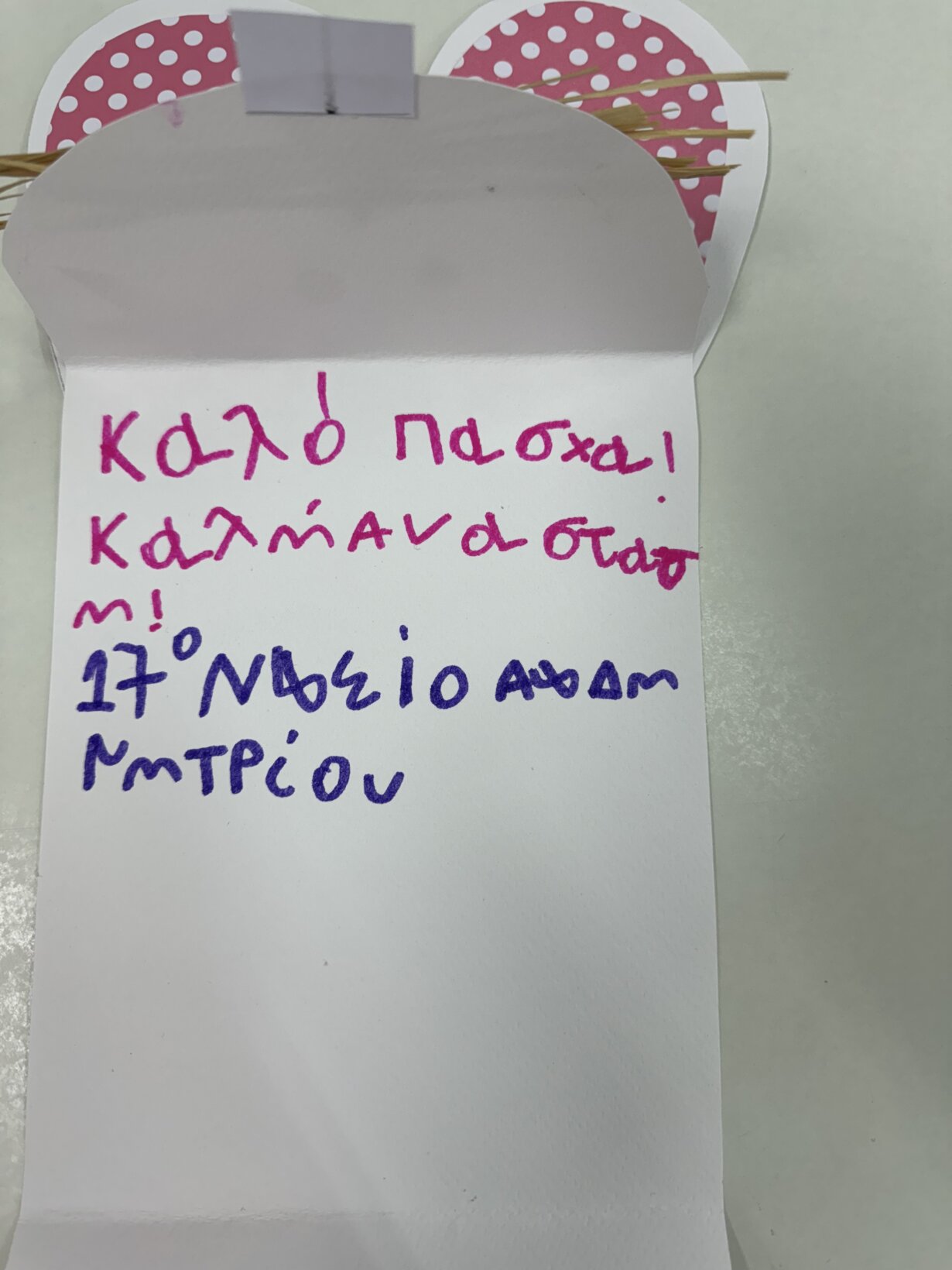 - Με την Miss Amy φτιάξαμε Easter Card και έγραψαν τις ευχές τους και στα αγγλικά