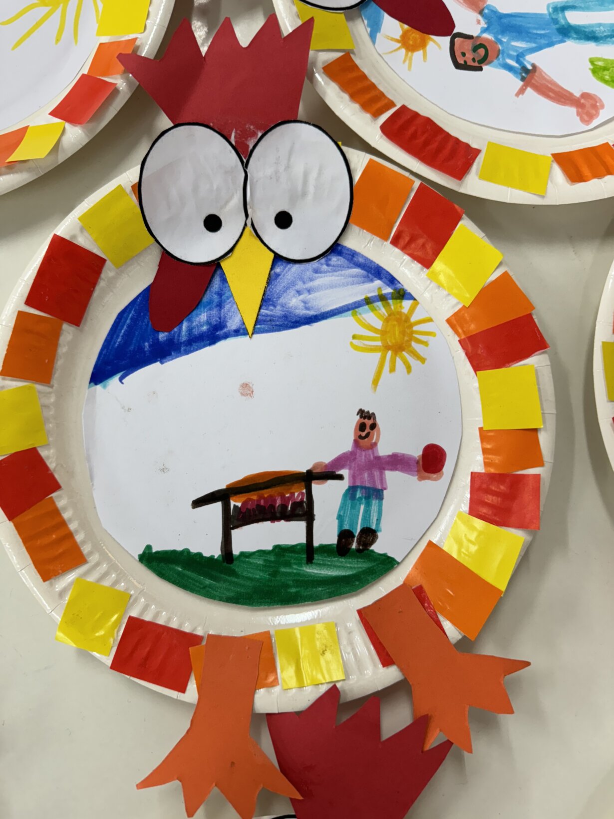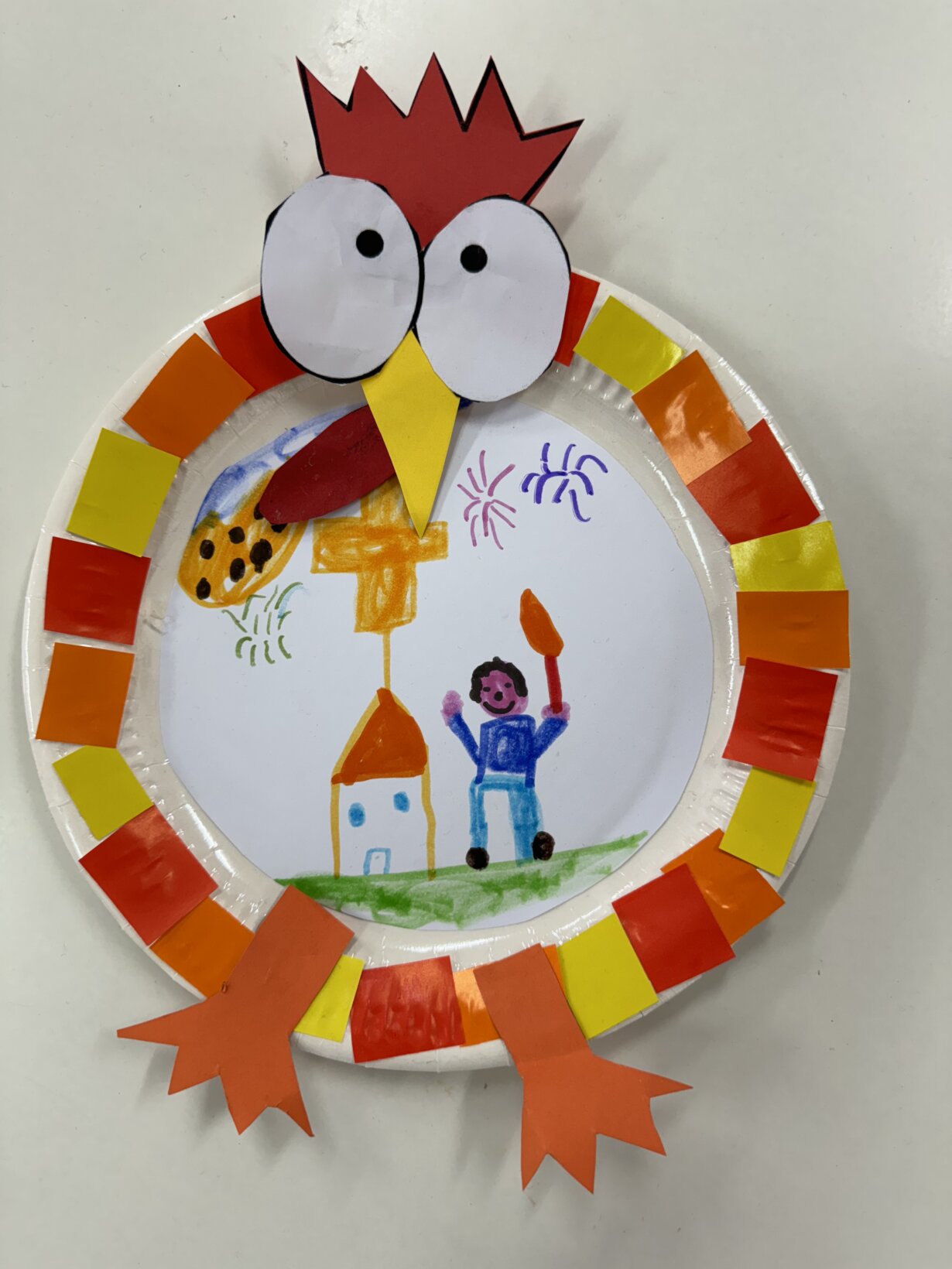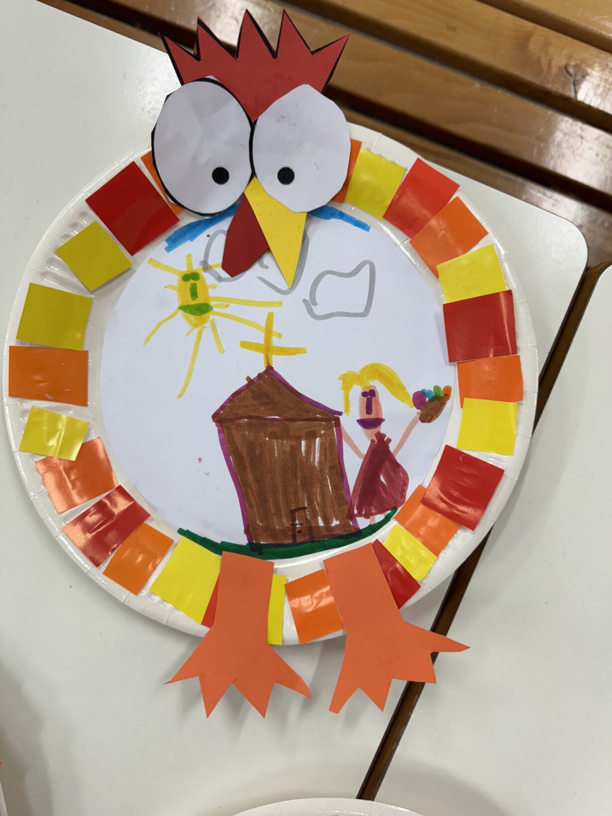 - Ζωγραφίσαμε μια πασχαλινή εικόνα και την κολλήσαμε στον κόκορα μας