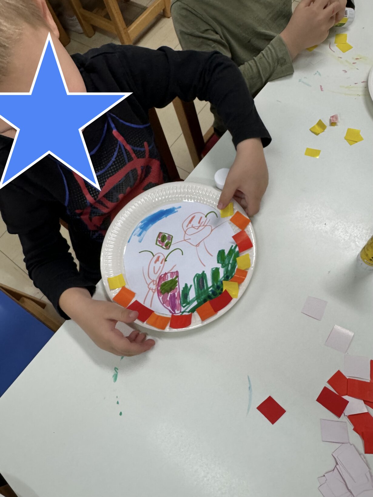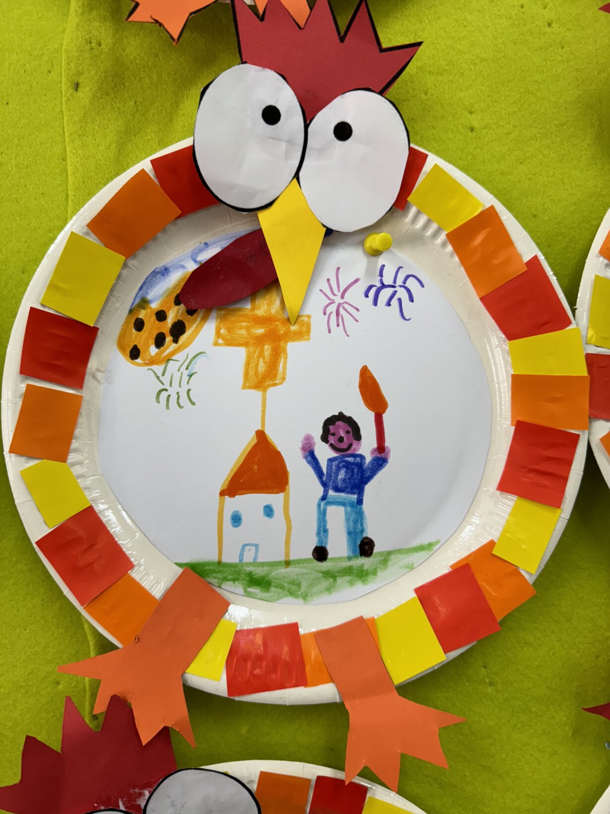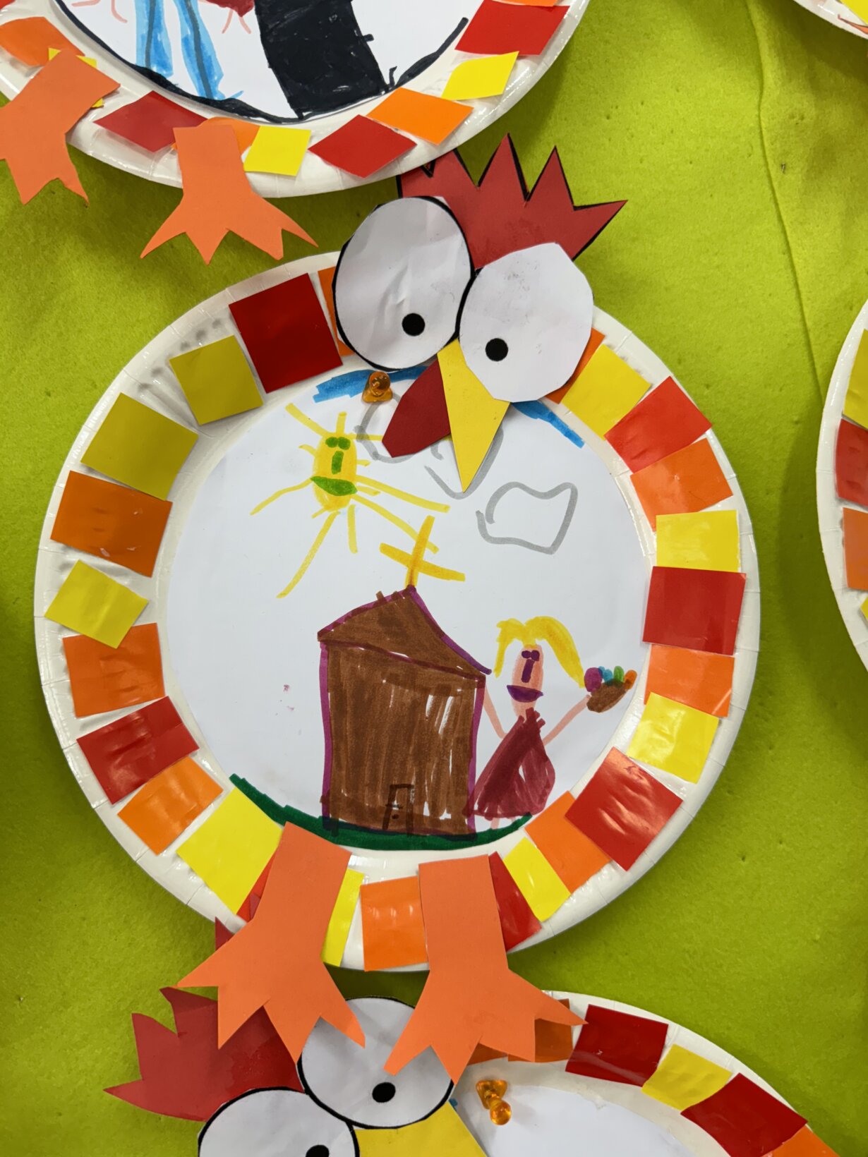 - Ζωγραφίσαμε μια πασχαλινή εικόνα και την κολλήσαμε στον κόκορα μας