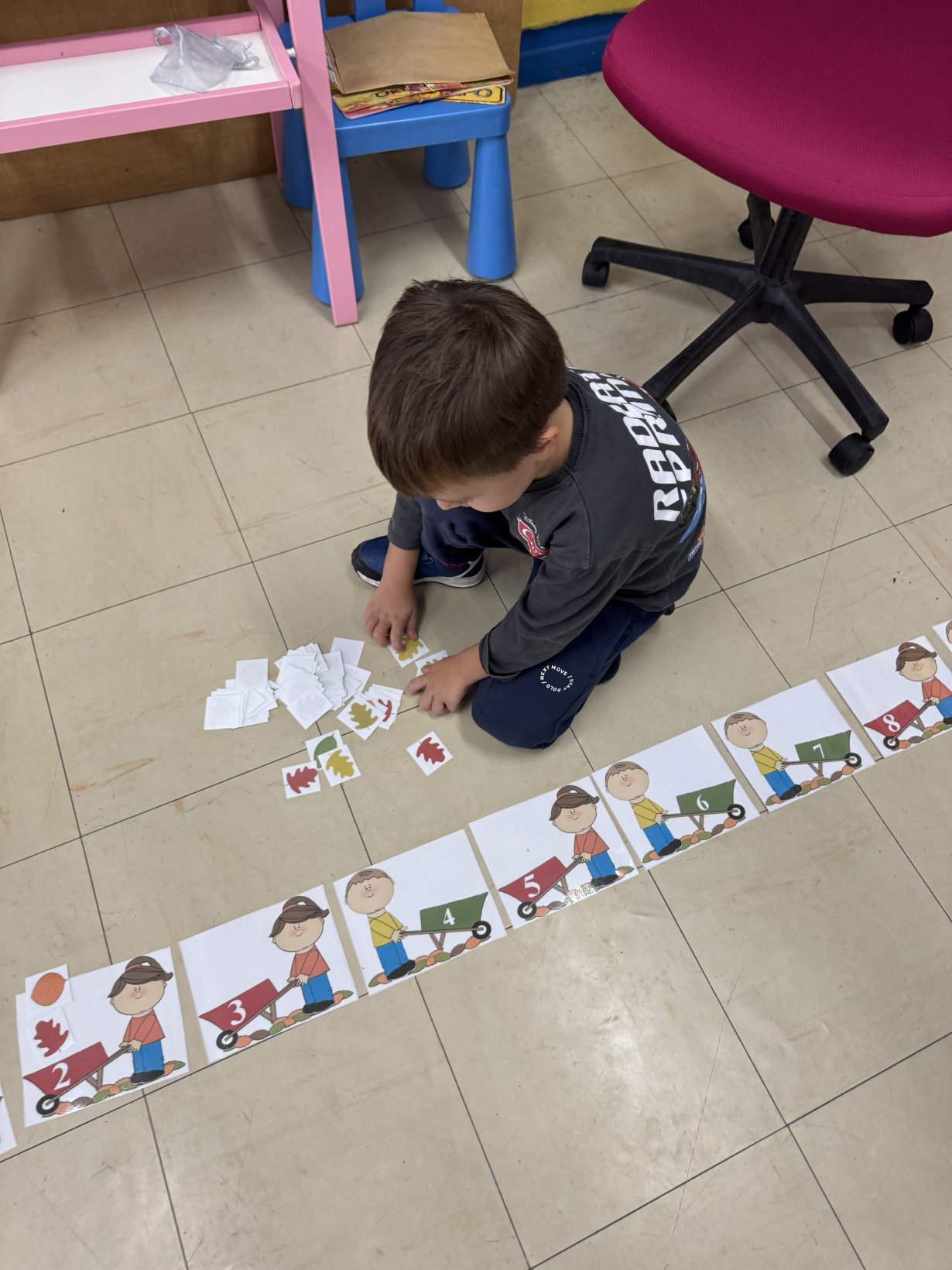 Μετρήσαμε – Αντιστοιχίσαμε …… Βάλαμε στα καρότσια όσα φυλλαράκια λέει ο αριθμός