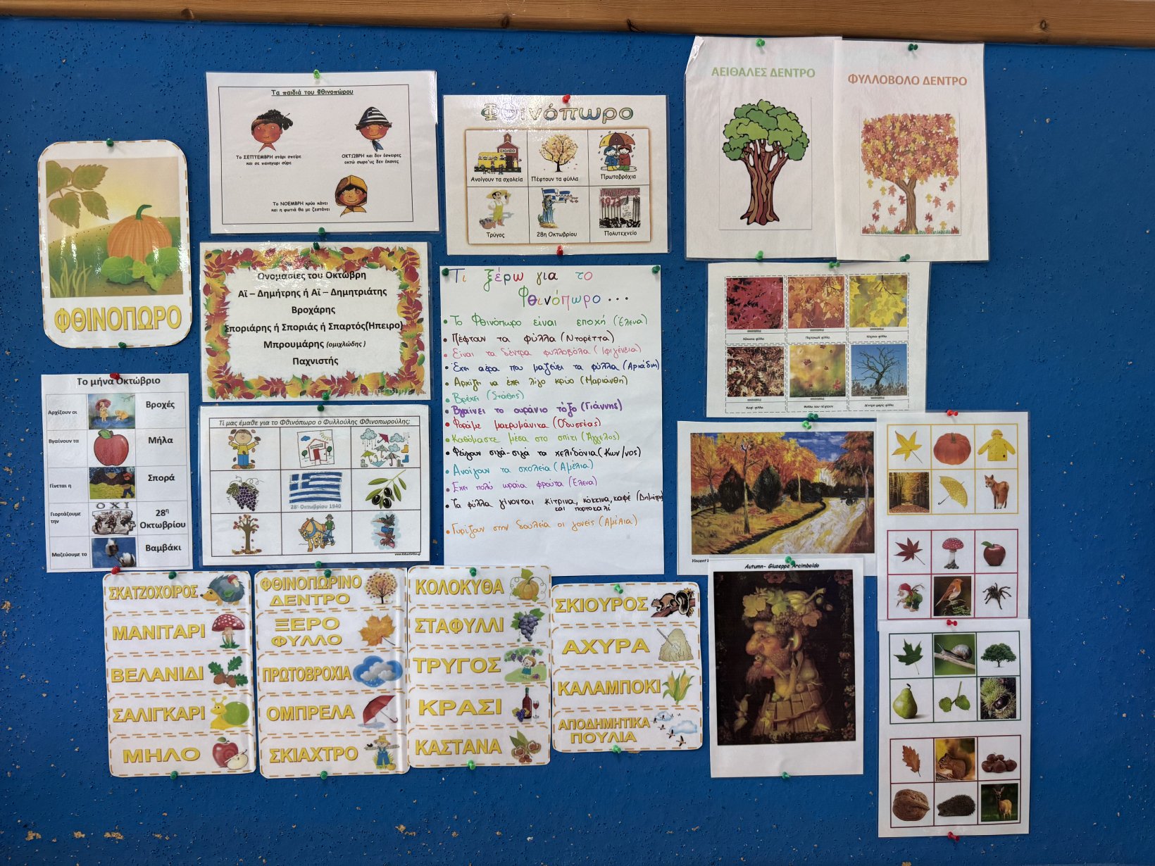 Μάθαμε το Φ, φ του Φθινοπώρου, βρήκαμε λέξεις που αρχίζουν από Φ, παίξαμε παιχνίδια με το γράμμα Φ και φτιάξαμε το Φ, φ του Φθινοπώρου.
