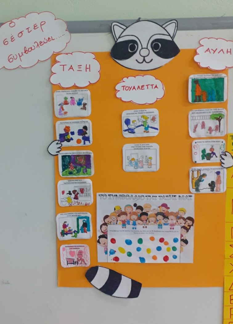 Βγάλαμε μια αναμνηστική φωτογραφία την 1η μέρα της νέας σχολικής χρονιάς, μάθαμε το μυστικό του Τσέστερ (το μαγικό φιλάκι!), παίξαμε πολλά παιχνίδια γνωριμίας, μοιραστήκαμε τις καλοκαιρινές μας αναμνήσεις, συμφωνήσαμε στους κανόνες της τάξης που θα πρέπει να ακολουθούμε για περνάμε όμορφα και να απολαμβάνουμε το παιχνίδι, μάθαμε να αναγνωρίζουμε και να γράφουμε το όνομα μας, το χωρίσαμε σε συλλαβούλες και παίξαμε με αυτό.