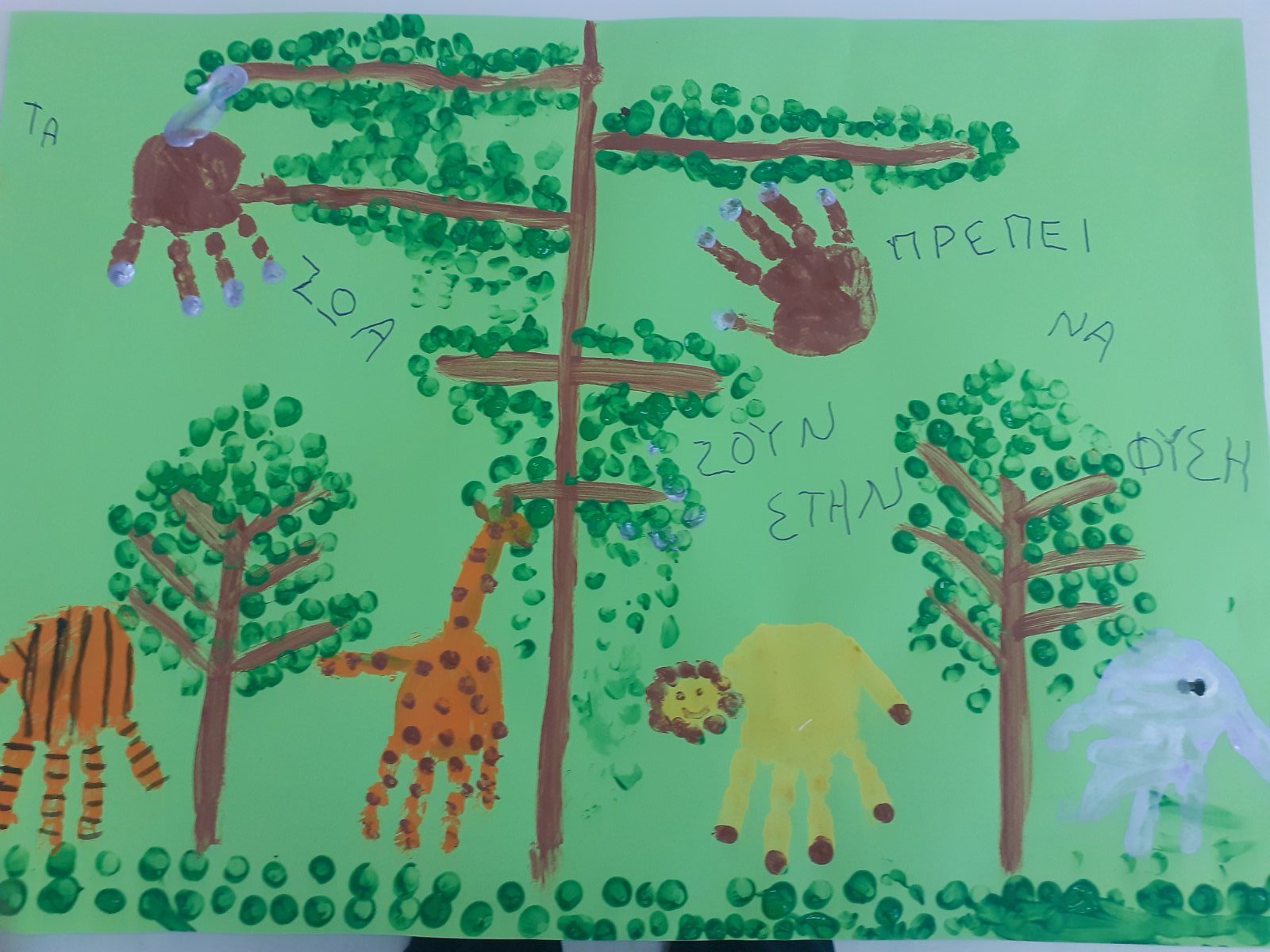 Αφού μιλήσαμε για τα ζώα προς εξαφάνιση και συζητήσαμε για τις ανάγκες των ζώων και το πώς πρέπει να τα φερόμαστε κάναμε μια γατούλα με την παλάμη μας!!!