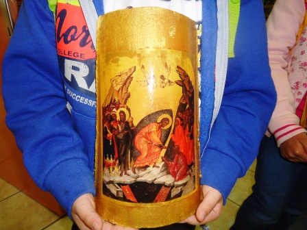 Το πρώτο αυγό που βάφουμε είναι της Παναγίας και το βάζουμε στο εικονοστάσι.