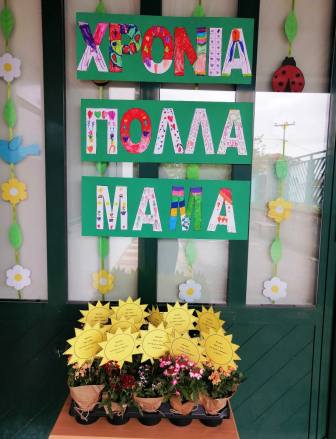 Ο Σύλλογος Γονέων και κηδεμόνων πρόσφερε γλαστρούλες με λουλούδια για τις μαμάδες του Νηπιαγωγείου μας.