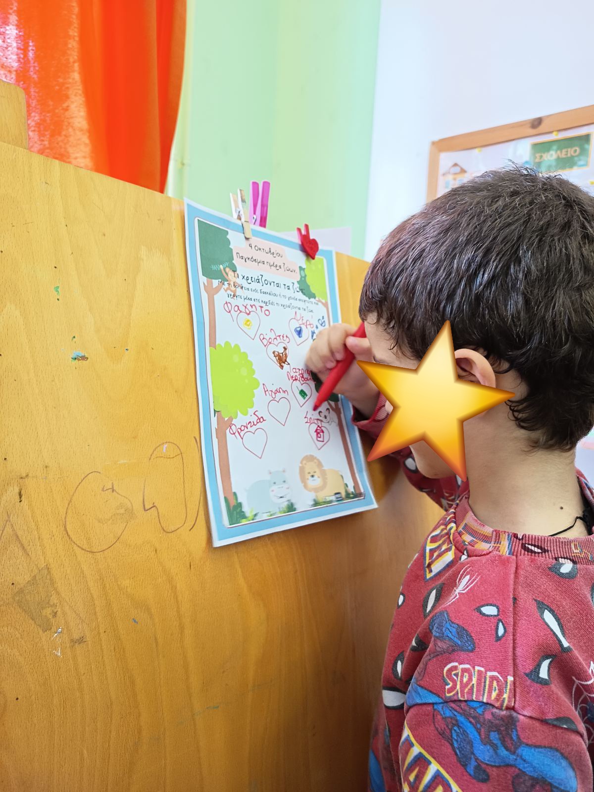 συνεχίσαμε με συζήτηση για να αποφασίσουμε ποια είναι τα χαρακτηριστικά της δικής μας ομάδας (μαθητές, αγόρια, κορίτσια, νήπια, προνήπια, ομοιότητες και διαφορές), σχεδιάσαμε, μετά από προτάσεις των παιδιών, την αφίσα της ομάδας μας όπου συζητήσαμε και καταγράψαμε τι μας κάνει χαρούμενους γιατί είναι πολύ σημαντικό ννα στοχεύουμε σε αυτό το θετικό συναίσθημα