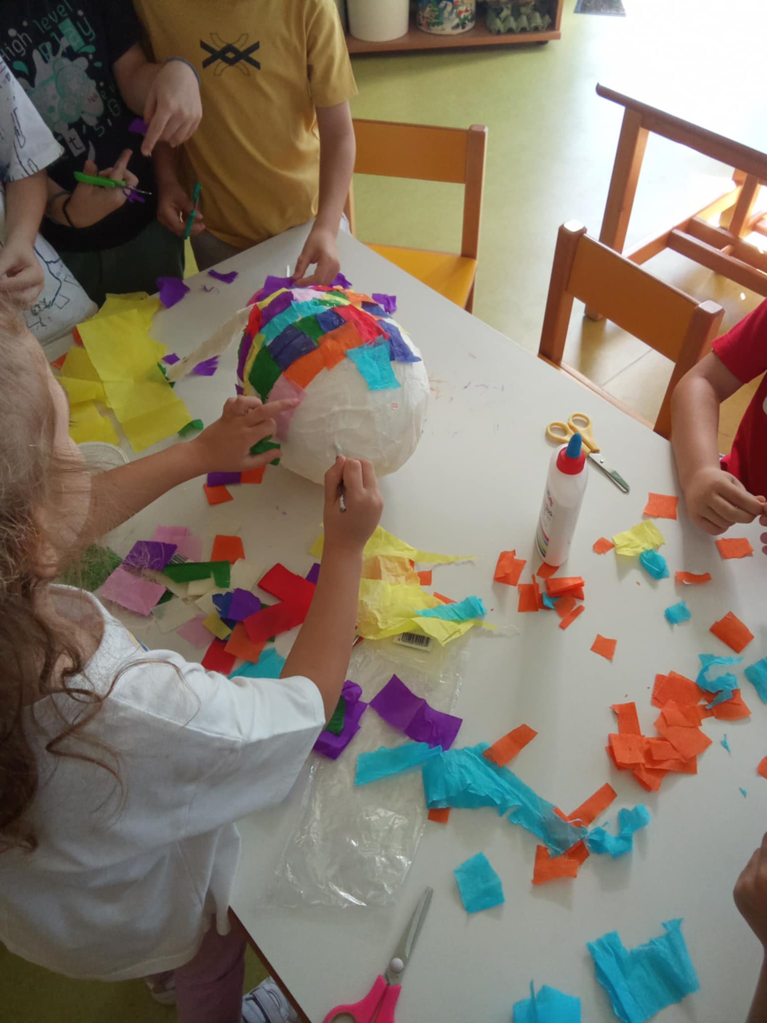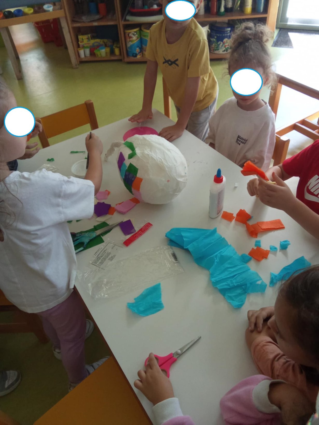Ο αύλειος χώρος δυστυχώς παρ’ότι πολύ μεγάλος δεν θυμίζει αυλή νηπιαγωγείου. Δεν είναι ούτε εξοπλισμένος με σταθερά παιχνίδια ούτε διαθέτει στέγαστρο, παρ’ όλες τις προσπάθειές μας. Το υλικό του δαπέδου στο μεγαλύτερο μέρος είναι κυβόλιθος που η εμπειρία μας μετά από σχεδόν 10 χρόνια χρήσης έδειξε ότι δεν είναι το καταλληλότερο. Τα παιδιά στην αυλή παίζουν με ένα μικρό τούνελ-κάμπια και δύο πλαστικά σπιτάκια.