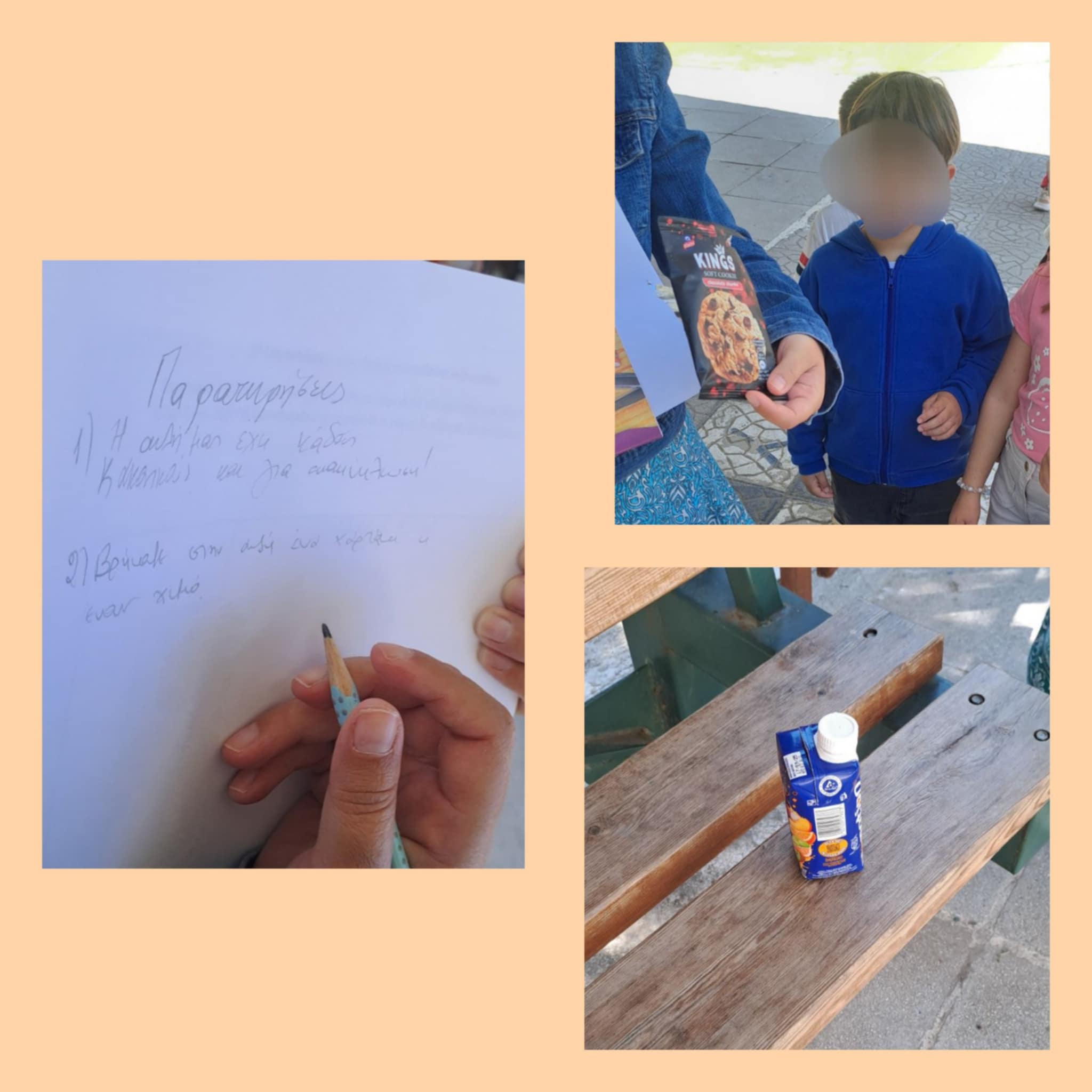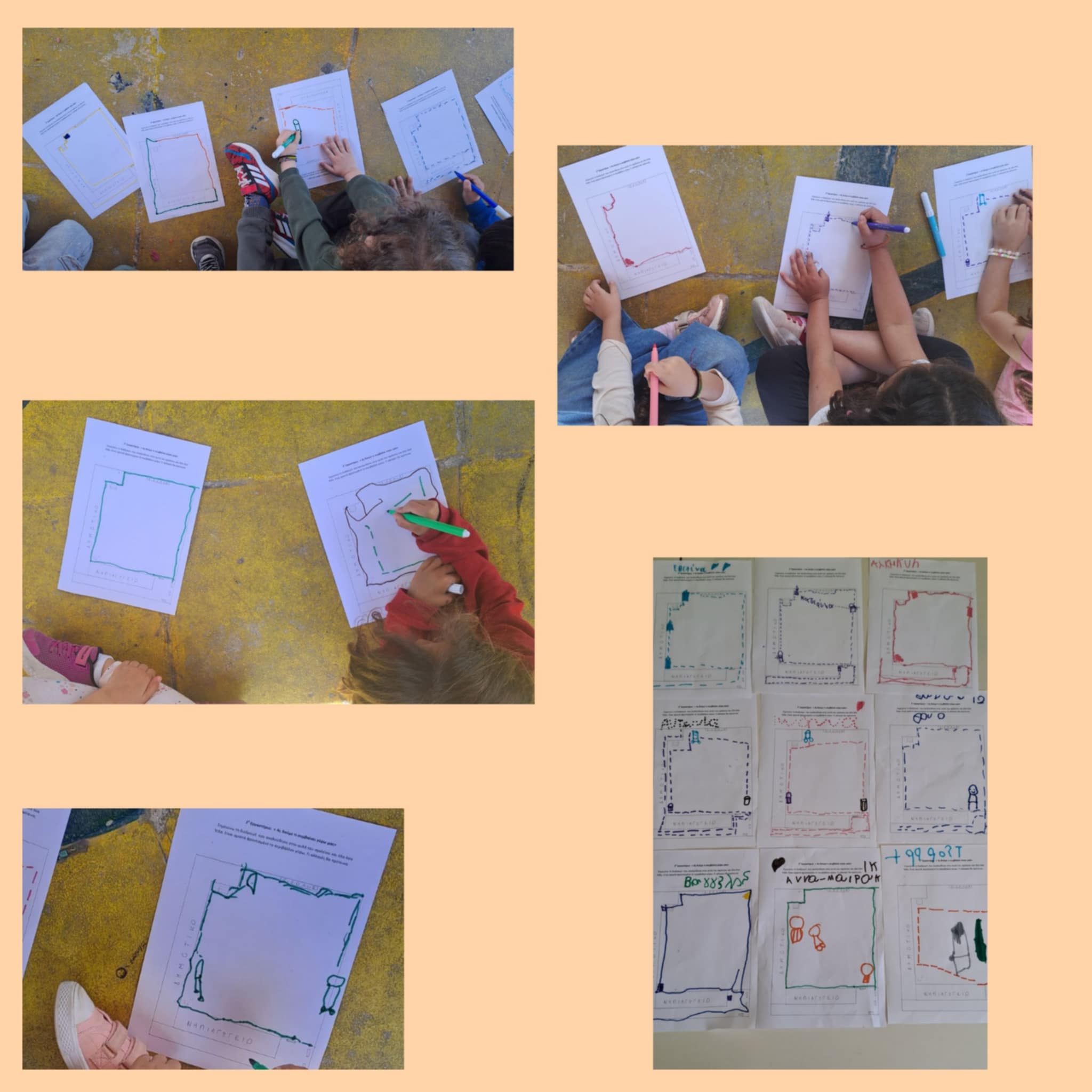 Επιστρέφοντας από τον περίπατο, ζητήθηκε να αποτυπώσουν ατομικά τη διαδρομή που ακολούθησαν και τα όσα συνάντησαν στον δρόμο. Επίσης, εξέφρασαν την άποψή τους σε σχέση με την ικανοποιητική φροντίδα του χώρου της αυλής και προτάσεις βελτίωσης.