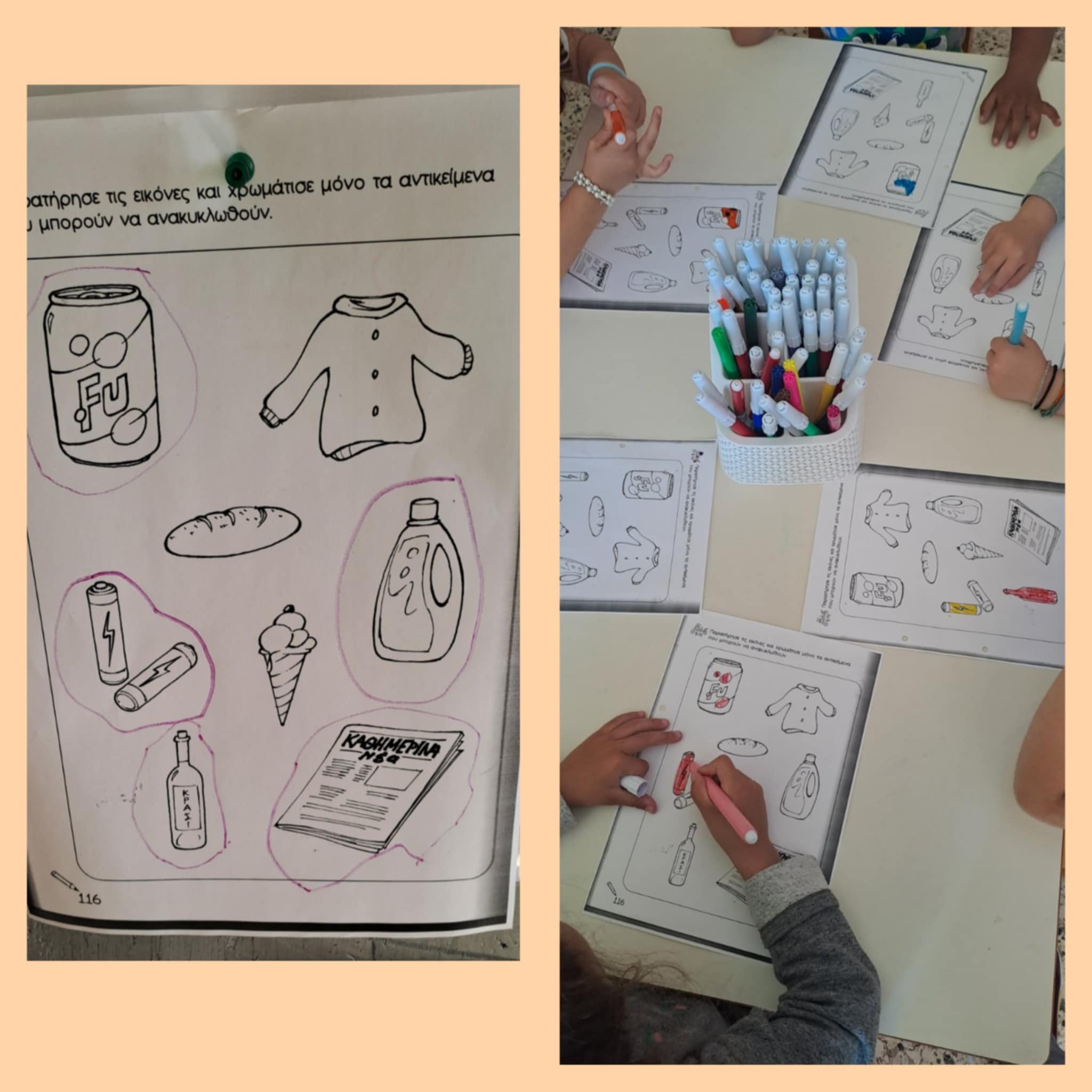 Στη συνέχεια συμπλήρωσαν φύλα εργασίας σχετικά με τα είδη που ανακυκλώνονται.
