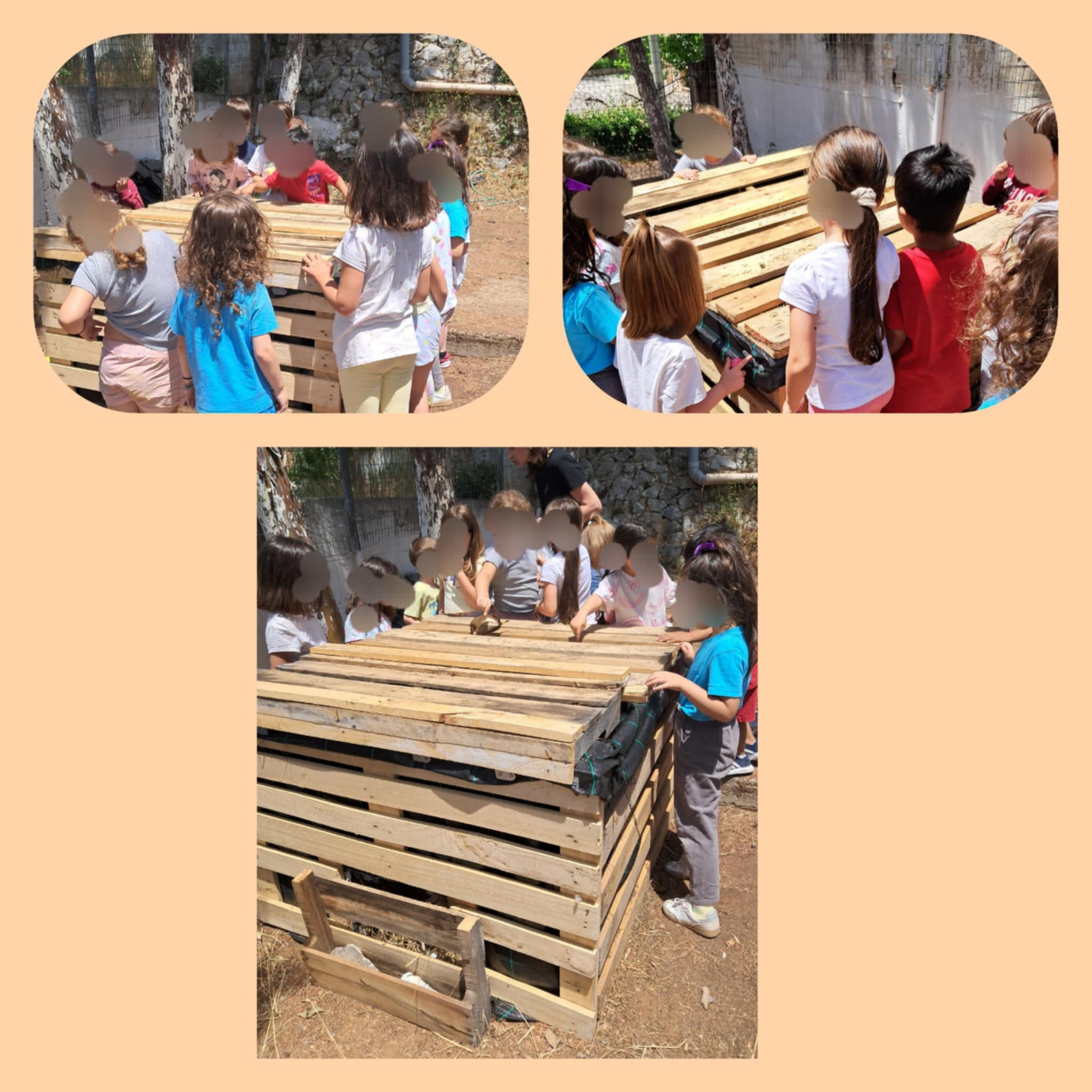 Μιλήσαμε για την κομποστοποίηση, μια κυκλική διαδικασία όπου σε ειδικούς κάδους- κομποστοποιητές απορρίπτονται τα οργανικά απορρίματα όπως φλούδες λαχανικών και φρούτων, κόκαλα, τσόφλια αυγών κλπ. και γίνονται λίπασμα το οποίο χρησιμοποιούμε στον κήπο μας! Αποφασίσαμε από εδώ και πέρα, τα παιδιά να πετούν τις φλούδες από τις μπανάνες που έχουν για κολατσιό στον κομποστοποιητή του Δημοτικού σχολείου.