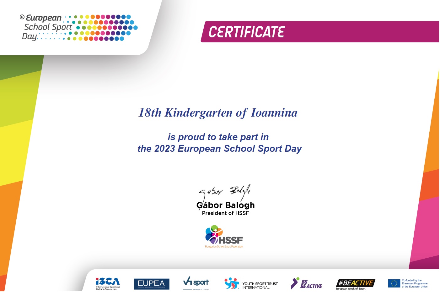 To 18o Νηπιαγωγείο συμμετέχει στις εκδηλώσεις για την Ευρωπαϊκή Ημέρα Σχολικού Αθλητισμού 2023.