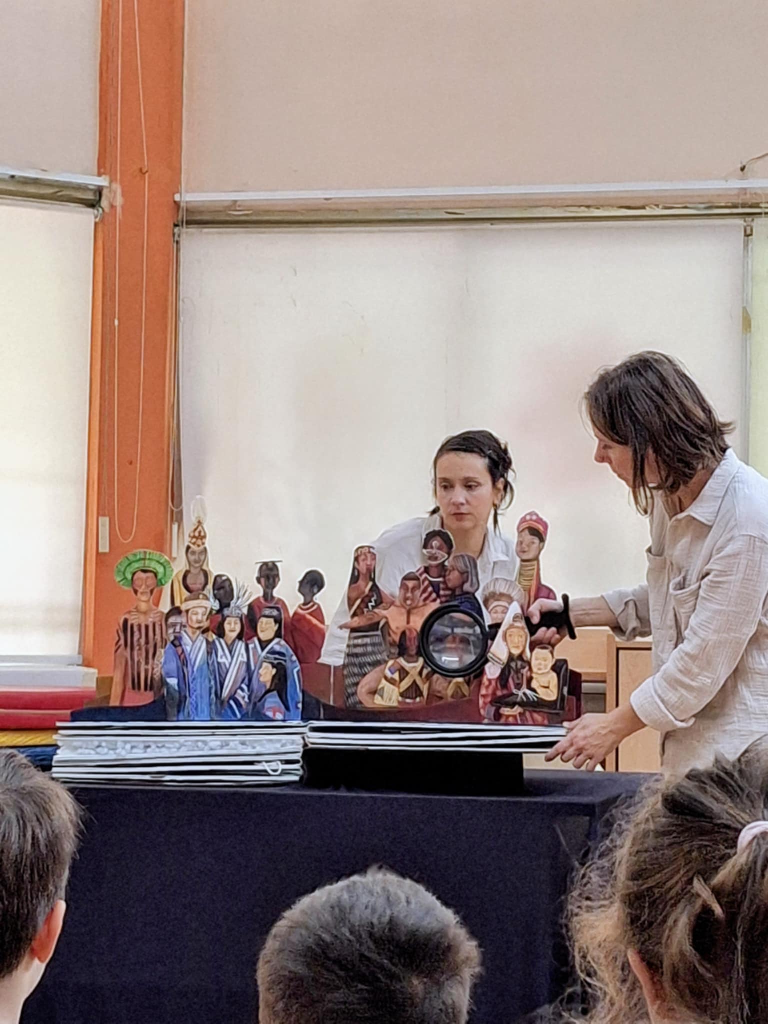 Σήμερα, το σχολείο μας επισκέφτηκε η καλλιτεχνική ομάδα Marmita και μας ζήτησε να τη βοηθήσουμε για να λύσει ένα περίεργο αίνιγμα. ” Τι είναι αυτό που μας κάνει ανθρώπους;” μας ρώτησε και με τη βοήθεια των στοιχείων ενός ευφάνταστου βιβλίου -σκηνής που μεταμορφωνόταν μπροστά μας ανακαλύψαμε πως ένα από αυτά που μας διαφοροποιούν από όλα τα πλάσματα του πλανήτη δεν είναι άλλο από τη ΓΛΩΣΣΑ!