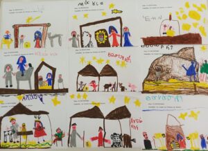 Στα πλαίσια του Σχεδίου Δράσης του σχολείου μας «Η σχολική μας βιβλιοθήκη , ένα ορυχείο χρυσού για μικρά παιδιά», οι μαθητές μας αποφάσισαν για το θεατρικό έργο που θα ανεβάσουν στη χριστουγεννιάτικη γιορτή μας, που δεν είναι άλλο από τη μάχη μεταξύ των αγαπημένων μας χριστουγεννιάτικων γλυκών, από το βιβλίο «Φον Κουραμπιές εναντίον κόμη Μελομακαρόνη» του συγγραφέα Κυριάκου Χαρίτου! Το εξώφυλλο του βιβλίου, ενέπνευσε τα παιδιά να το φιλοτεχνήσουν και έτσι προέκυψε η αφίσα της παράστασής μας, που δημιουργήσαμε στον υπολογιστή με τη βοήθεια του προγράμματος Canva, αφού τα παιδιά επέλεξαν μια από τις ζωγραφιές για να χρησιμοποιηθεί στη δημιουργία της αφίσας μας! Οι μικροί μας εικονογράφοι, που αγαπούν εξίσου μελομακάρονα και κουραμπιέδες, έβαλαν τα δυνατά τους και το αποτέλεσμα ήταν μοναδικό!Μπράβο παιδιά 👏🏻👏🏻👏🏻!