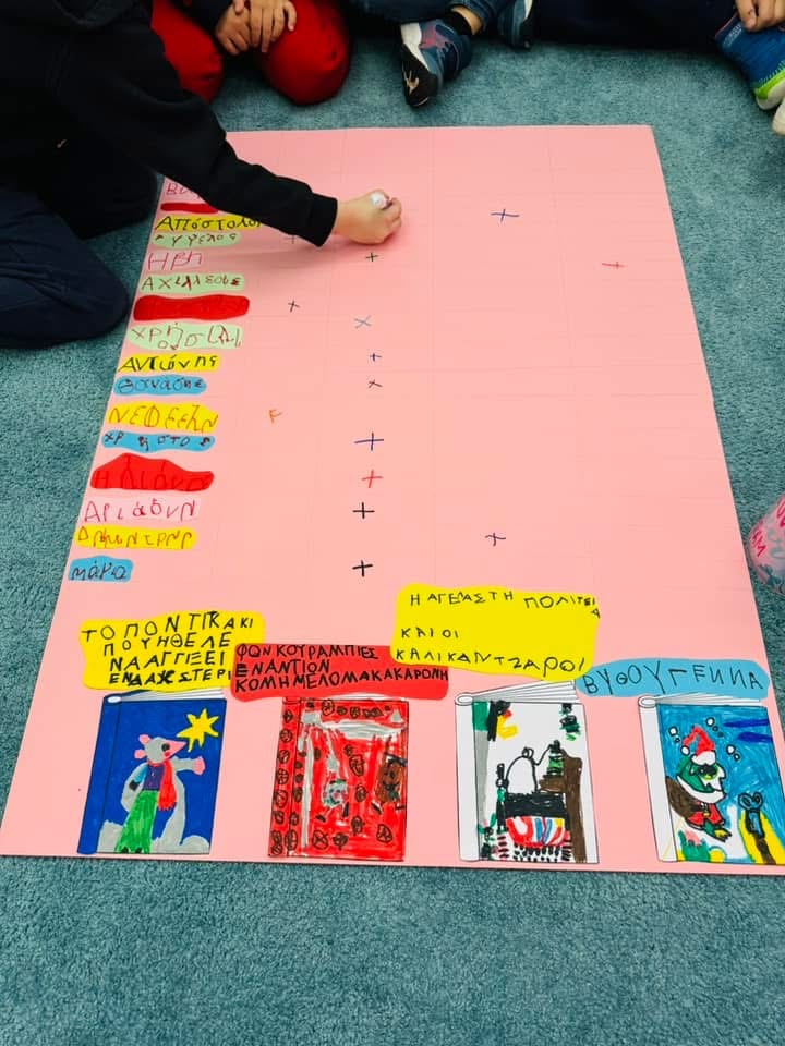 Ο κύβος ερρίφθη!!! Φον Κουραμπιές και κόμης Μελομακαρόνης πάλεψαν σκληρά και κέρδισαν τη μάχη του αγαπημένου βιβλίου των παιδιών στο οποίο θα βασιστεί η χριστουγεννιάτικη θεατρική παράσταση της τάξης μας! Στα πλαίσια του σχεδίου δράσης του σχολείου μας « Η σχολική μας βιβλιοθήκη, ένα “ορυχείο χρυσού” για μικρά παιδιά», ο Ντίνος, ο βιβλιοθηκάριος της σχολικής μας βιβλιοθήκης, μας πρότεινε για ανάγνωση χριστουγεννιάτικα βιβλία που θα μπορούσαν να αποτελέσουν θεατρικό έργο για την χριστουγεννιάτικη γιορτούλα μας! Αφού τα διαβάσαμε και τα απολαύσαμε πραγματικά, τα παιδιά κλήθηκαν να «ψηφίσουν» την αγαπημένη τους ιστορία για τη θεατρική μας παράσταση! Στόχος αυτής της δραστηριότητας, μέσα από την Θεματική Ενότητα των Μαθηματικών, να αποκτήσουν τα παιδιά δεξιότητες κατασκευής γραφικών παραστάσεων, πινάκων διπλής εισόδου και διαγραμμάτων, συλλογής και οργάνωσης δεδομένων, αξιολόγησης συμπερασμάτων και λήψης αποφάσεων! Έτσι η απόφαση λήφθηκε με ψηφοφορία και δημοκρατικό τρόπο! Τώρα…για τη «μάχη του ζαχαροπλαστείου», θα πρέπει φον Κουραμπιές και κόμης Μελομακαρόνης, να παλέψουν ξανά, αυτή τη φορά μεταξύ τους! Ποιος θα είναι ο νικητής, το αγαπημένο γλυκό των γιορτών, θα το ανακαλύψουν μόνο όσοι τιμήσουν με την παρουσία τους την χριστουγεννιάτικη γιορτούλα μας!
