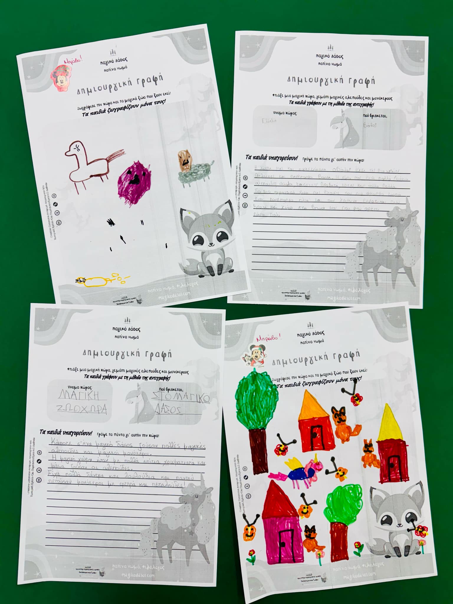 Φέτος, στα πλαίσια του Σχεδίου Δράσης μας, σκεφτήκαμε πως ήταν μια πολύ καλή ευκαιρία να λάβουμε μέρος στο δωρεάν πρωτότυπο project δημιουργικής γραφής “Μαγικό Δάσος” που διοργανώνεται από την εκπαιδευτικό κα Ματίνα Ψωμά, για το σχολικό έτος 2024-2025!Κάθε εβδομάδα, σε συνεργασία με τους μαθητές μας, επιλέγαμε ελεύθερα μία από τις τρεις κατηγορίες αποστολών που υπάρχουν στην ηλεκτρονική σελίδα https://magikodasos.com/. , όπως και το εκτυπώσιμο υλικό που συνοδεύει την κάθε κατηγορία (Αποστολή Χαρακτήρων, Τοποθεσιών ή Ιδεών) και αφού το επεξεργαζόμασταν ώστε να το προσαρμόσουμε στις ανάγκες και τις δυνατότητες των μαθητών του νηπιαγωγείου, το δίναμε στα παιδιά! Έτσι το κάθε παιδί, μέσα στο Σαββατοκύριακο, είχε μια αποστολή να φέρει εις πέρας, τη δημιουργία μιας ιστορίας βασισμένης στο ζητούμενο της κατηγορίας που είχαμε επιλέξει στην τάξη, δηλαδή μια ιστορία βασισμένη σε έναν ήρωα- “Χαρακτήρα”, σε μια “Τοποθεσία” ή σε μια “Ιδέα”, όπως επίσης και να μας παρουσιάσει μέσα στη εβδομάδα, τόσο την ιστορία που εμπνεύστηκε, όσο και την εικαστική αποτύπωση αντίστοιχα του ήρωα, της τοποθεσίας ή της ιδέας του, μια διαδικασία ενθάρρυνσης της φαντασίας, της δημιουργικής σκέψης, της δημιουργικότητας και της προφορικής έκφρασης. Συνεργάτες μας σε αυτή την προσπάθεια οι γονείς των παιδιών, καθώς χωρίς τη δική τους συνεργασία δεν θα μπορούσε να υλοποιηθεί το πρόγραμμα, από την στιγμή που η δράση γινόταν στο σπίτι το Σαββατοκύριακο, όπου τα παιδιά θα έπρεπε να συνεργαστούν με κάποιον γονέα που θα αναλάμβανε το ρόλο του “γραμματέα”, εκείνου που θα κατέγραφε την έμπνευση του παιδιού στο χαρτί, ενώ το παιδί θα υπαγόρευε τη φανταστική του ιστορία ως άλλος “μικρός συγγραφέας”! Η δράση αυτή, μετά το πέρας 7 εβδομάδων, ολοκληρώθηκε με απόλυτη επιτυχία και αυτό αποδεικνύεται από τις φανταστικές ιστορίες, τα “μικρά διαμαντάκια” που έφτασαν στην τάξη μας, που απεστάλησαν στην κα Μ.Ψωμά, η οποία ενθουσιάστηκε και ανταπέδωσε με έναν “Έπαινο Συμμετοχής” στο πρόγραμμα, για το κάθε παιδί ξεχωριστά! Μελλοντικός στόχος αυτής της δράσης αποτελεί η δημιουργία-παραγωγή των δικών μας ιστοριών- “Μικρών Βιβλίων” ή μεγάλων, έντυπων ή ψηφιακών, αφού δώσουμε πρώτα στα παιδιά την ευκαιρία να εξελίξουν σταδιακά τις δεξιότητές τους στην προφορική επικοινωνία και έκφραση, την παραγωγή προφορικού λόγου, την δημιουργική σκέψη και την φαντασία, καθιστώντας τα πιο ώριμα και έτοιμα να τοποθετήσουν το επόμενο “τουβλάκι” στο οικοδόμημα της μάθησης, ομαδικά αυτή τη φορά!