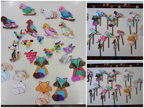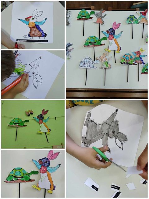 Την επόμενη μέρα ζήτησαν να παίξουμε κουκλοθέατρο. Έτσι κατασκευάσαμε φιγούρες του λαγού και της χελώνας.