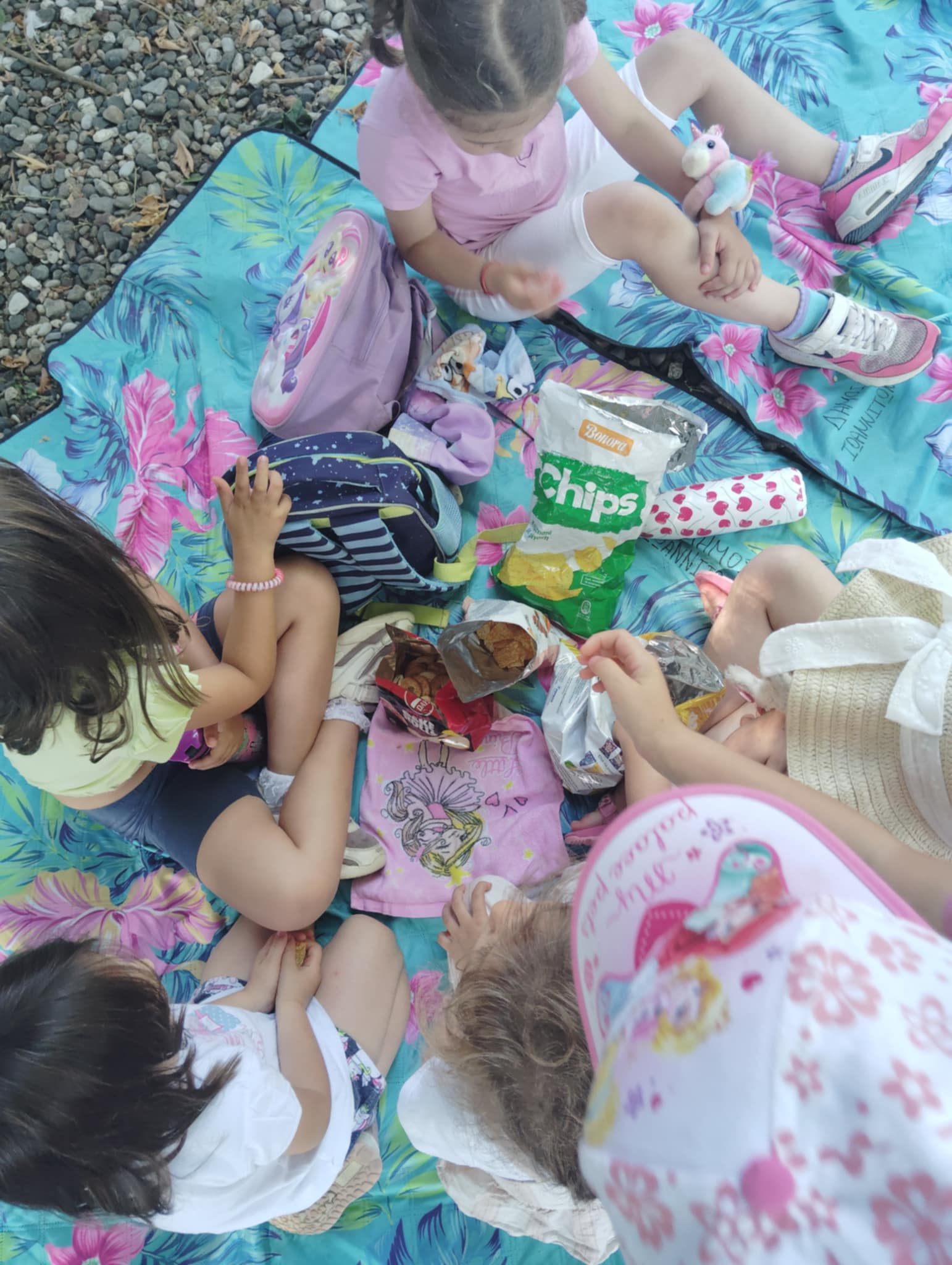 Η αυλή του σχολείου μας εμπλουτίζεται κάθε χρόνο με άνθη, αρωματικά φυτά και δένδρα δημιουργώντας γωνιές παιχνιδιού, χαλάρωσης, παρατήρησης και εκπαίδευσης. Έτσι λοιπόν επιλέξαμε το μεσημεριανό μας γεύμα να γίνει στην αυλή σαν να έχουμε πάει μία εκδρομή, να αφηγηθούμε ένα παραμύθι στη σκιά του δένδρου, να ζωγραφίσουμε και να παίξουμε !!!