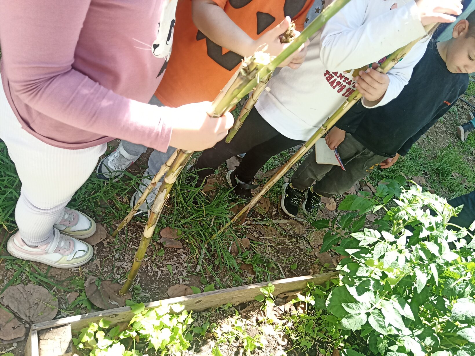 Βάζουμε καλάμια στις ντοματιές μας για να τις στηρίξουμε και περιμένουμε με υπομονή να μας δώσουν νόστιμες ντομάτες!