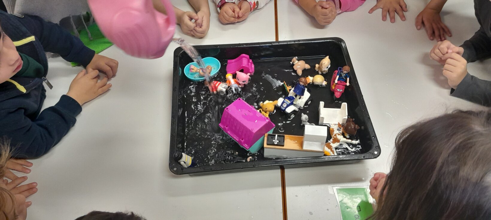 Επίσκεψη του Κέντρου Περιβαλλοντικής Εκπαίδευσης στο σχολείο μας όπου μας ενημέρωσαν για τις πλημμύρες .Εδώ το πείραμα με τις δυο πόλεις: η μία με δέντρα και η άλλη χωρίς δέντρα. Ποια θα πλημμυρίσει;