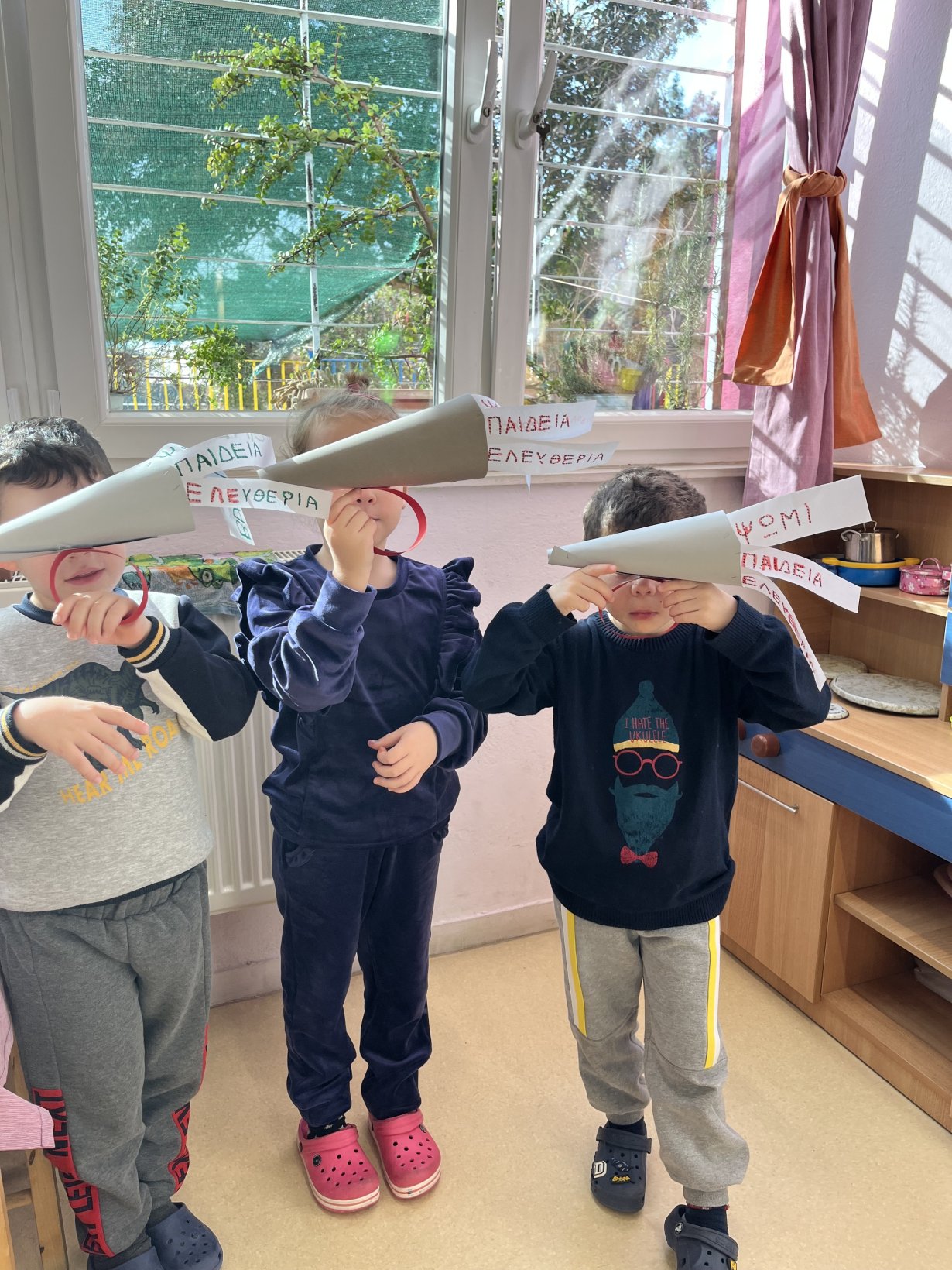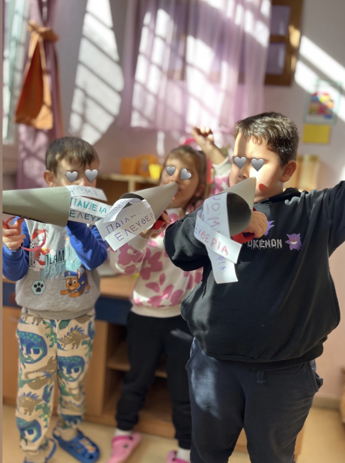 Στο νηπιαγωγείο μας γνωρίσαμε την ιστορία του Πολυτεχνείου με απλό και κατανοητό τρόπο. Μιλήσαμε για τα γεγονότα της εποχής και μάθαμε όλοι μαζί το σύνθημα «Ψωμί – Παιδεία – Ελευθερία».Ο εορτασμός μας κορυφώθηκε με το κουκλοθέατρο, όπου παρουσιάσαμε την αγαπημένη ιστορία «Ντενεκεδούπολη». Τα παιδιά συμμετείχαν με χαρά και ζωντάνια, γνωρίζοντας μέσα από τους ήρωες του έργου την αξία της ελευθερίας και της συνεργασίας.