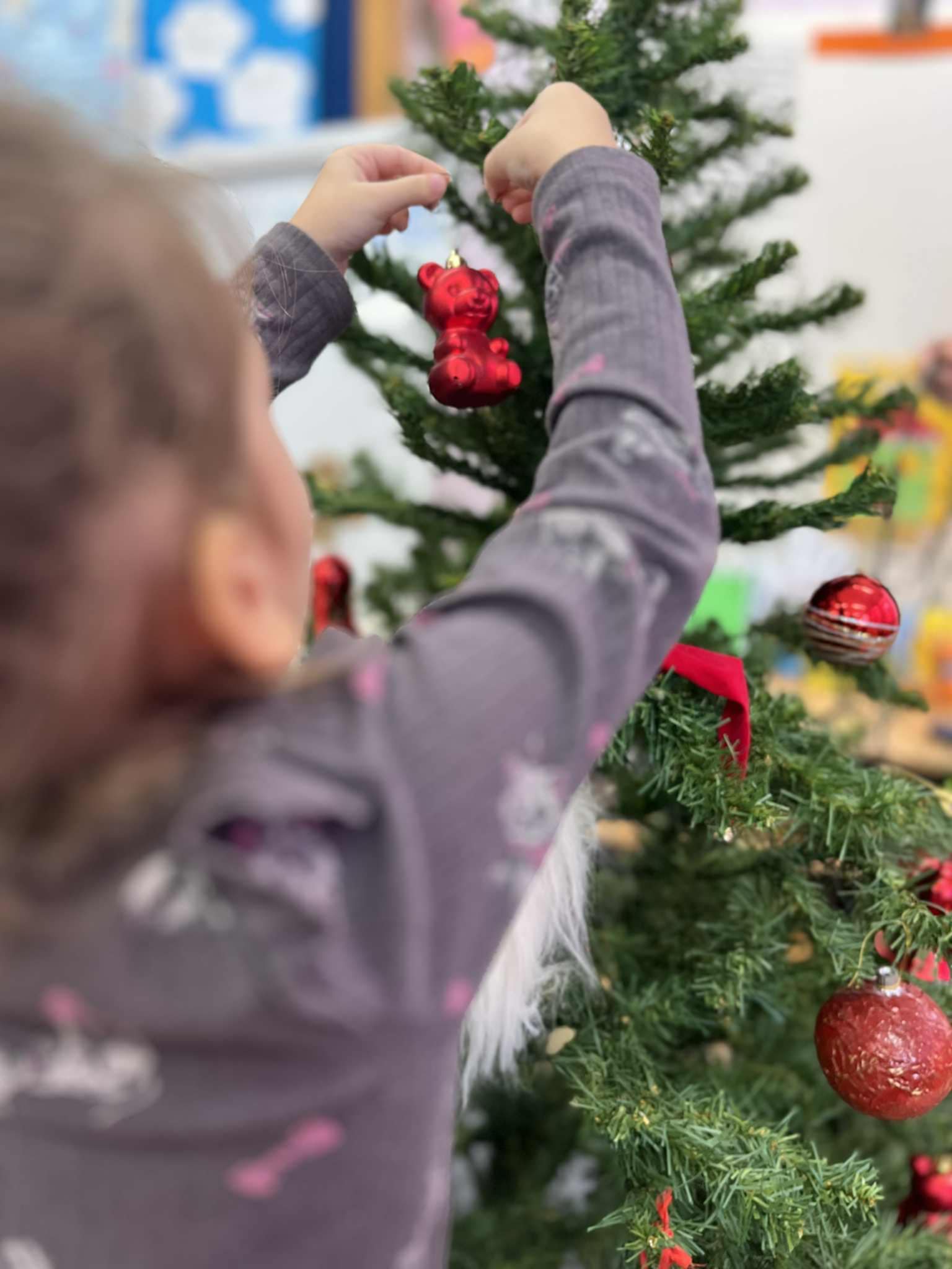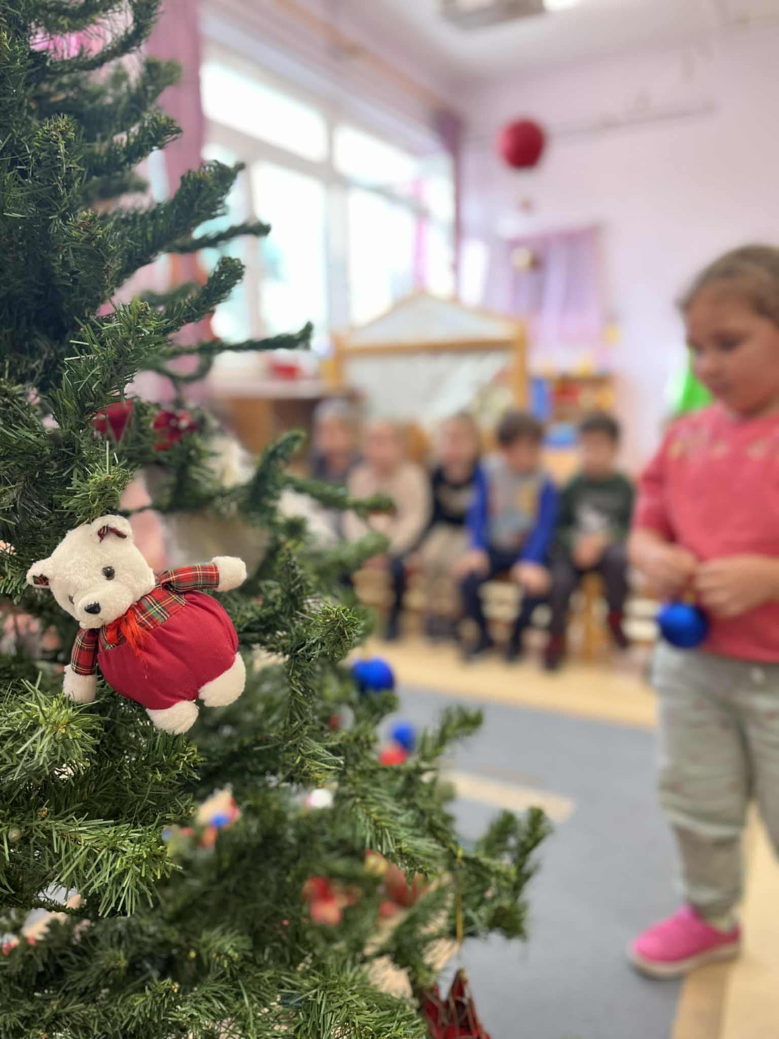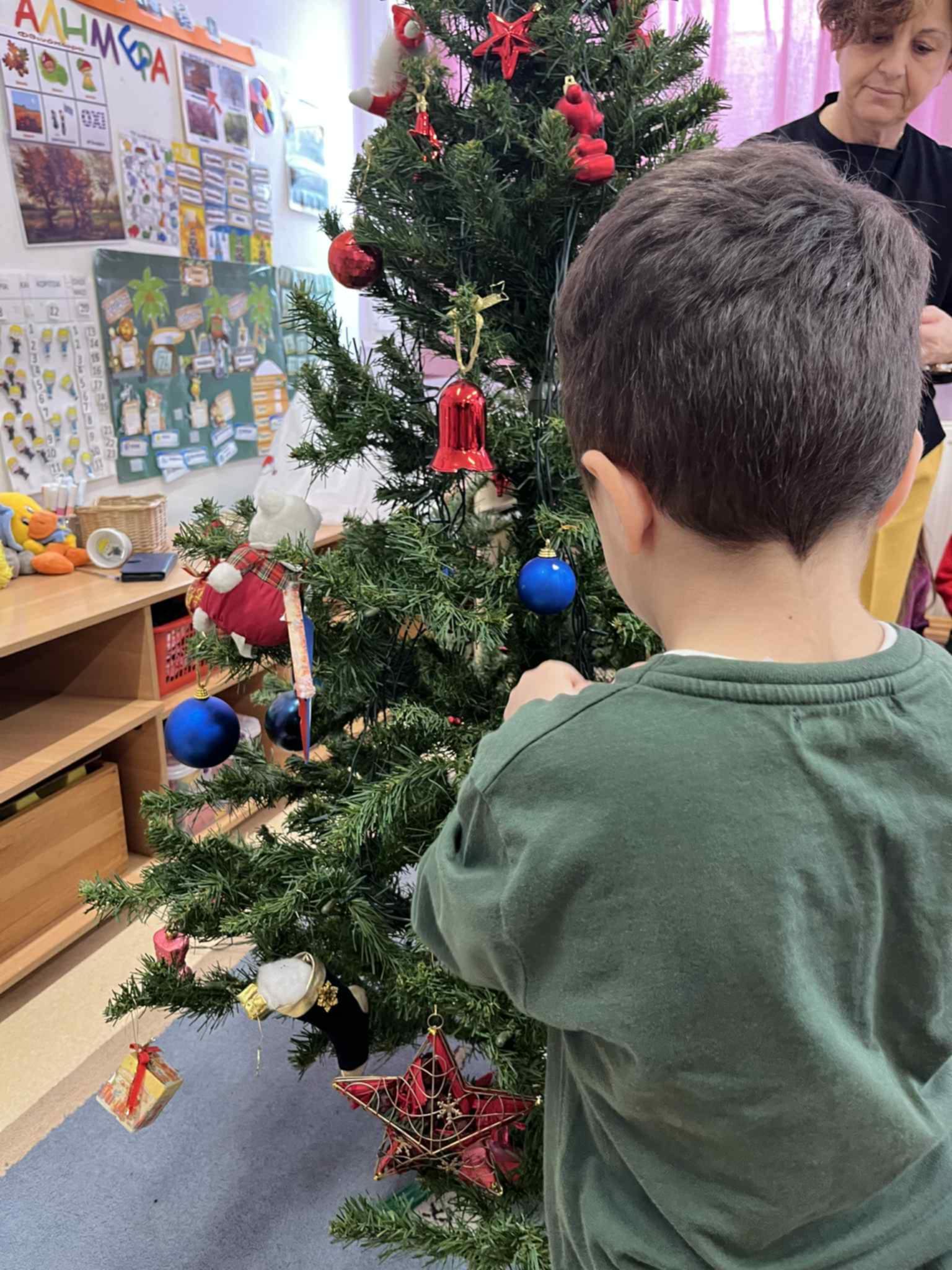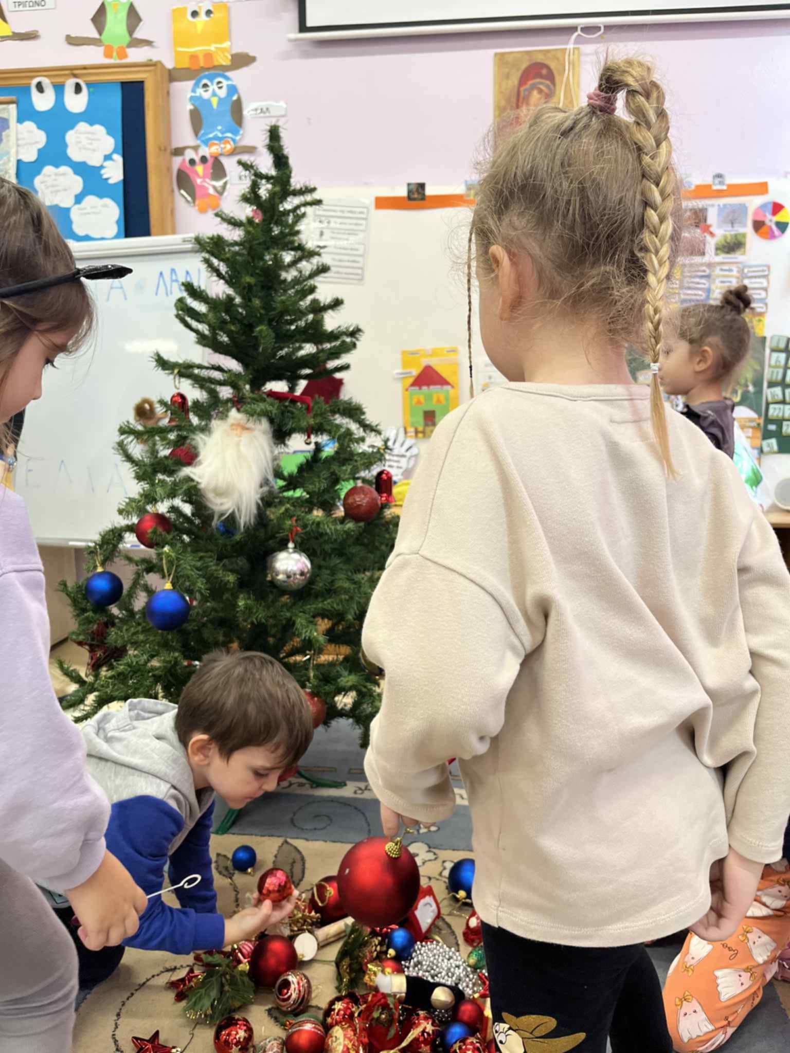 Οι μικροί μαθητές γέμισαν την αίθουσα με χαμόγελα και χρώματα, καθώς στόλισαν όλοι μαζί το χριστουγεννιάτικο δέντρο. Με ενθουσιασμό κρέμασαν στολίδια, φωτάκια και χειροποίητες δημιουργίες, μετατρέποντάς το σε ένα λαμπερό, γιορτινό δέντρο γεμάτο παιδική φαντασία. Η ατμόσφαιρα πλημμύρισε χαρά, μουσική και τη μαγεία των Χριστουγέννων, θυμίζοντάς μας πόσο όμορφο είναι να δημιουργούμε όλοι μαζί!