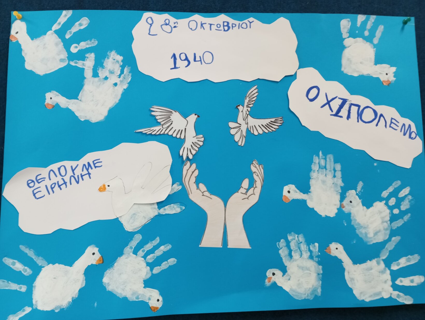 Την εβδομάδα αυτή συζητήσαμε για την επέτειο της 28ης Οκτωβρίου 1940. Μιλήσαμε για τα γεγονότα που συνέβησαν και για το ΟΧΙ των Ελλήνων! Κατασκευάσαμε τα φανταράκια που κρατούν τη λέξη “ΟΧΙ”