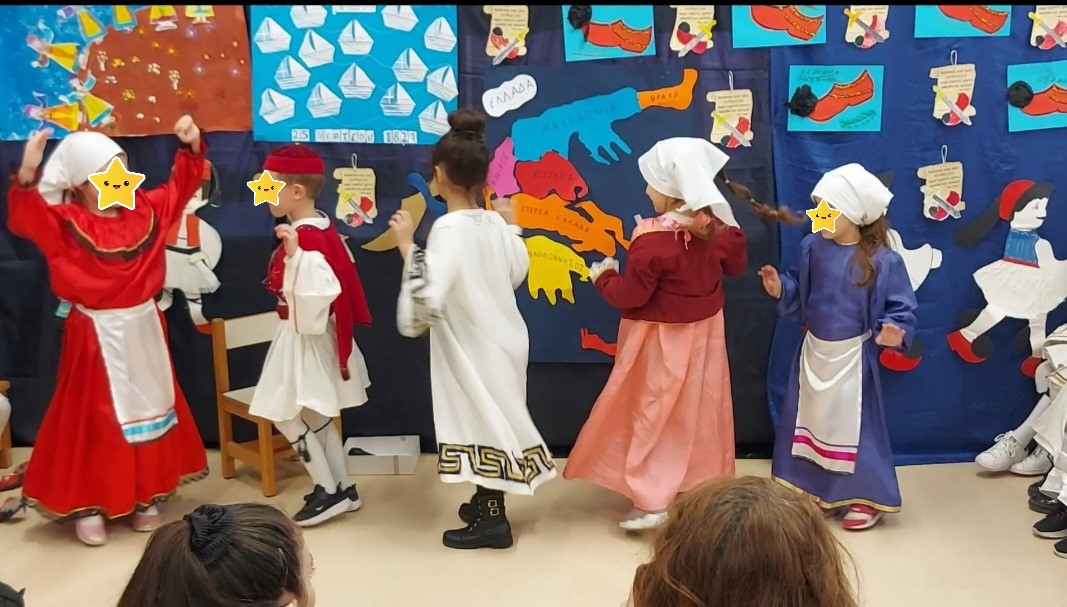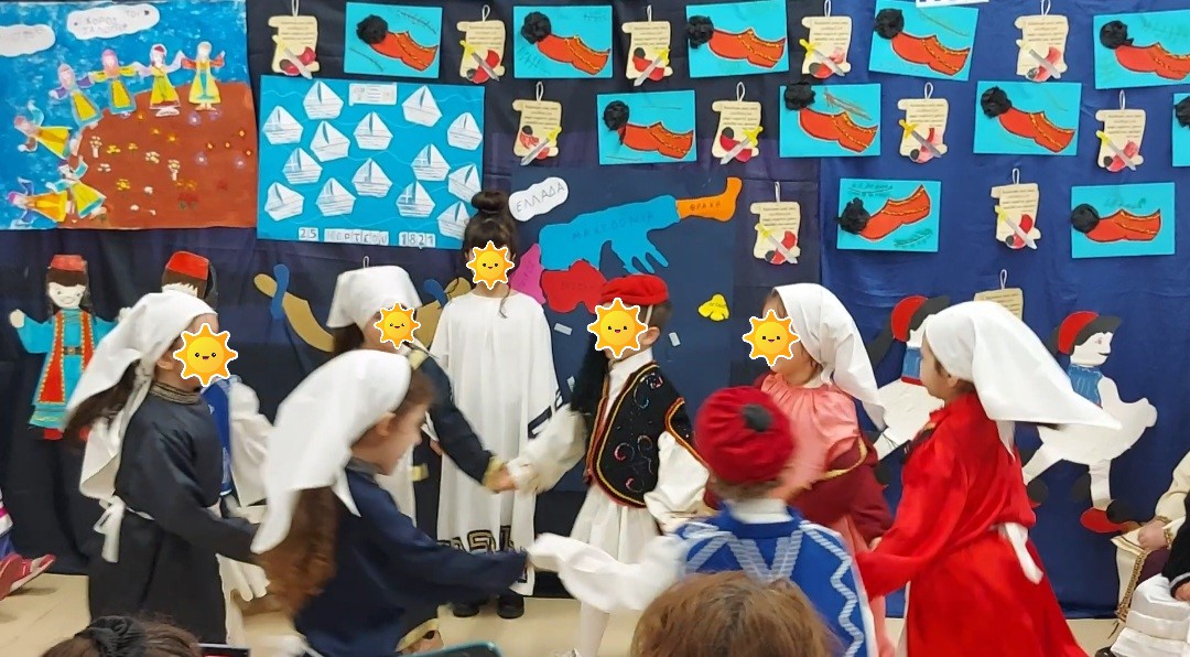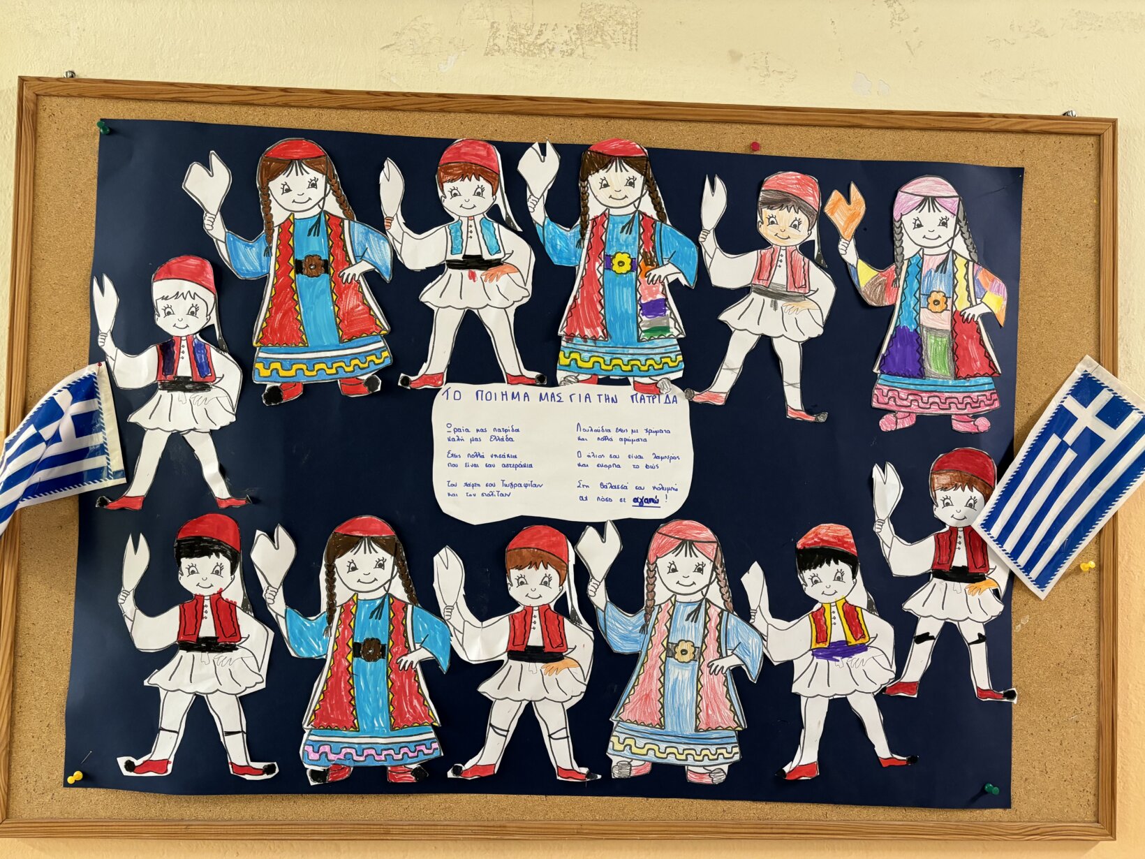 Συνδυάσαμε την Παγκόσμια Ημέρα Ποίησης (21-03) με την επανάσταση του 1821, διαβάζοντας το ποίημα του Οδυσσέα Ελύτη “Τα Ελληνάκια”. Έπειτα, ζωγραφίσαμε αυτό που μας άρεσε από το ποίημα, ακούγοντας και τραγούδια από άλλα ποιήματά του! Μας εντυπωσίασαν τόσο τα ποιήματά του, έτσι αποφασίσαμε να γράψουμε και εμείς ένα ποίημα για την Ελλάδα!