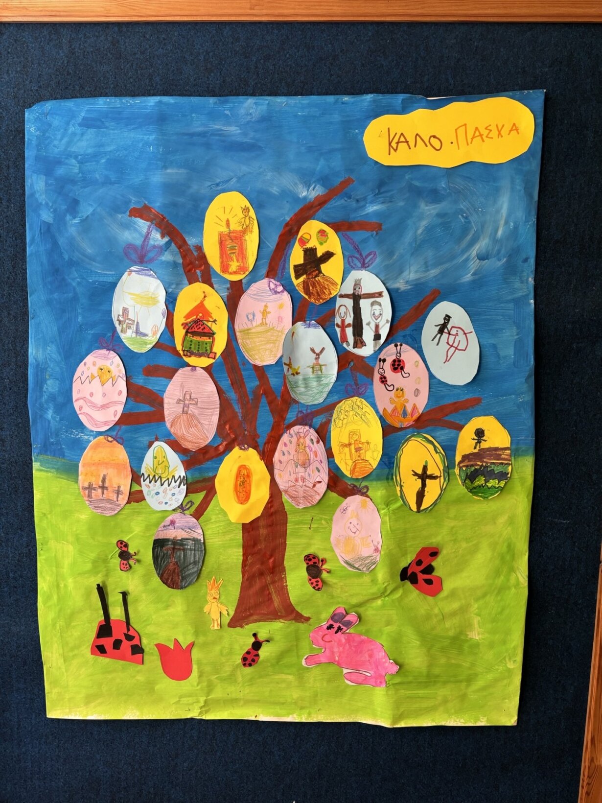 Tέλος, δημιουργήσαμε ομαδικά το δέντρο των πασχαλινών αυγών και ευχηθήκαμε Καλό Πάσχα!