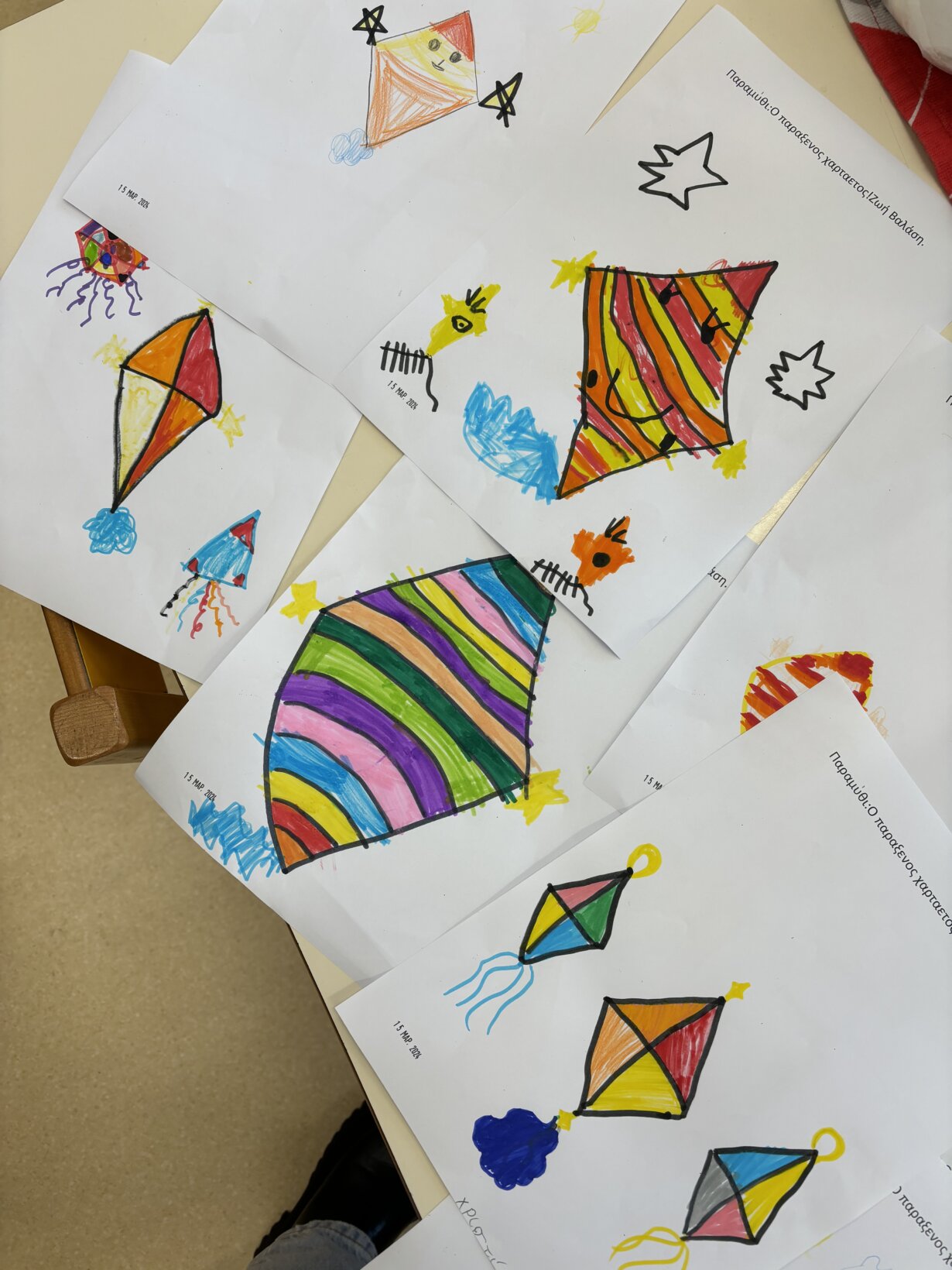 Ακόμη, μιλήσαμε για την Καθαρά Δευτέρα και φτιάξαμε πολύχρωμους χαρταετούς από χαρτόκουτα!