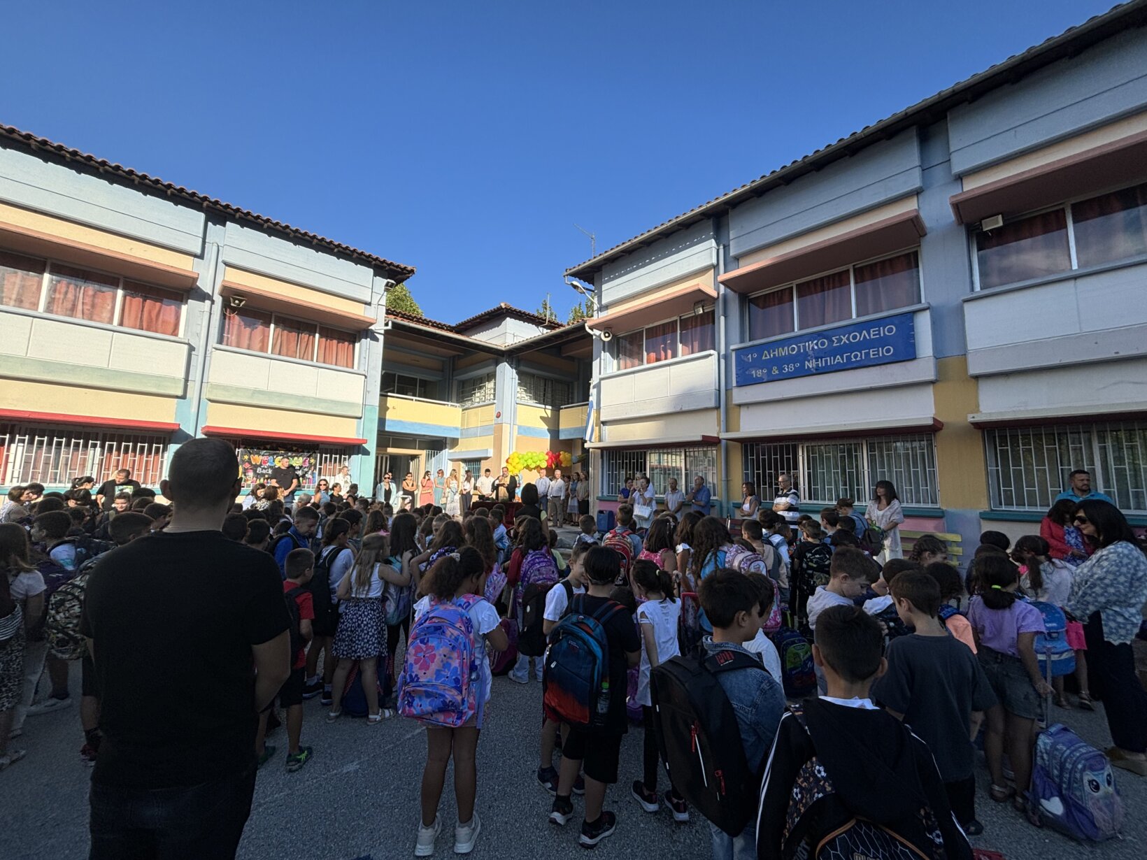 Ο αγιασμός του 1ου Δημοτικού Σχολείου Λάρισας για το σχολικό έτος: 2024-2025 θα πραγματοποιηθεί την Τετάρτη 11 Σεπτεμβρίου 2024 στις 8:30΄π.μ. στον προαύλιο χώρο του σχολείου. Στη συνέχεια οι μαθητές θα παραλάβουν τα βιβλία από τους/τις υπεύθυνους εκπαιδευτικούς των τάξεων, στις αίθουσές τους, και θα αποχωρήσουν.