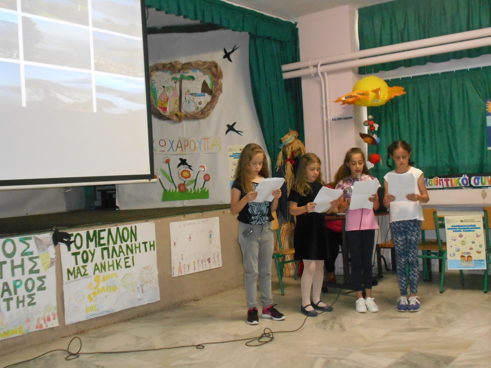 Το σχολείο μας συμμετείχε με Εισηγήσεις – Παρουσιάσεις δράσεων των μαθητών των Γ΄, Δ΄, Ε΄και Στ΄ τάξεων, οι οποίοι αναπτύσσοντας τις επικοινωνιακές ικανότητες, την αμοιβαιότητα και τη συνεργασία, την ταχύτερη προσωπική ανάπτυξη, την καλλιέργεια της κριτικής σκέψης και των ανώτερων πνευματικών τους δεξιοτήτων, υποστήριξαν τις εργασίες τους.