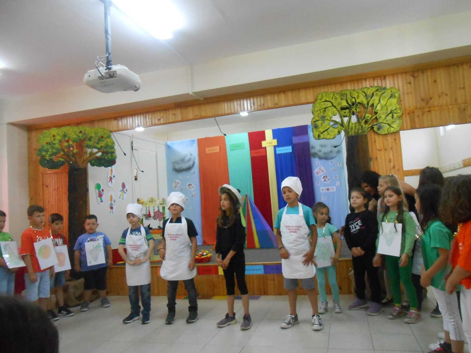 Παρουσίαση των Προγραμμάτων Αγωγής Υγείας “Φαγητοπαγίδες” και “Η Διατροφή μας” έγινε σήμερα από τους μαθητές/τριες των Α΄και Β΄τάξεων του σχολείου μας με συντονίστριες τις δασκάλες κκ Κακάλη Δροσιά, Παλάσκα Ειρήνη και κ. Τόλκα Ελένη, η οποία είχε τη μουσική επιμέλεια της εκδήλωσης.