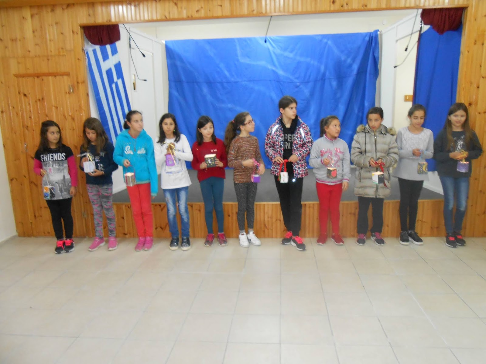 Συγχαρητήρια στους μαθητές/μαθήτριες, που συμμετείχαν στην εκδήλωση, στον υπεύθυνο δάσκαλο κ. Αθανάσιο Καραπόκη και στο δάσκαλο κ. Γεώργιο Παπαδόπουλο, που είχε την επιμέλεια των σκηνικών της σχολικής γιορτής.