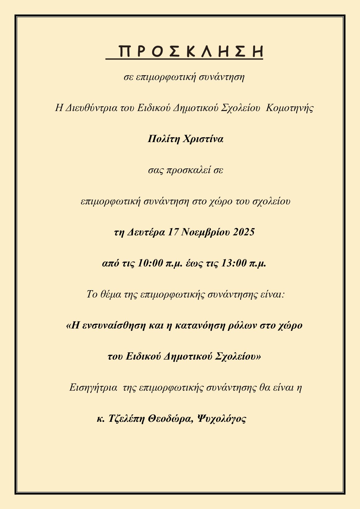 ΕΠΙΜΟΡΦΩΣΗ «Η ενσυναίσθηση και η κατανόηση ρόλων στο χώρο του ειδικού δημοτικού σχολείου»