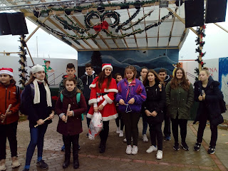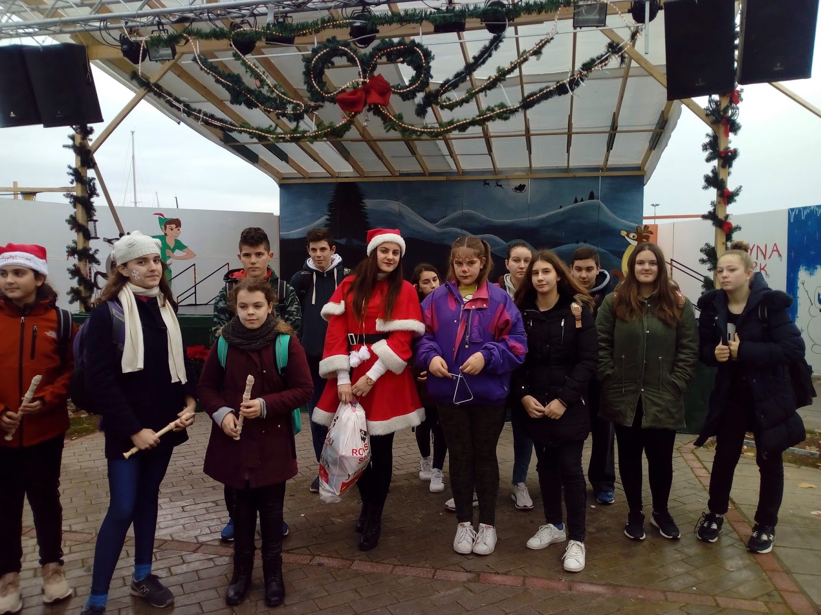 Μαθητές του 1ου Γυμνασίου έψαλαν τα κάλαντα και πρόσφεραν τρόφιμα στο γηροκομείο και το κοινωνικό παντοπωλείο. Επίσης τραγούδησαν για το κοινό του χριστουγεννιάτικου χωριού, προσφέροντας παιχνίδια στο σπιτάκι του Αη Βασίλη! Και του χρόνου!