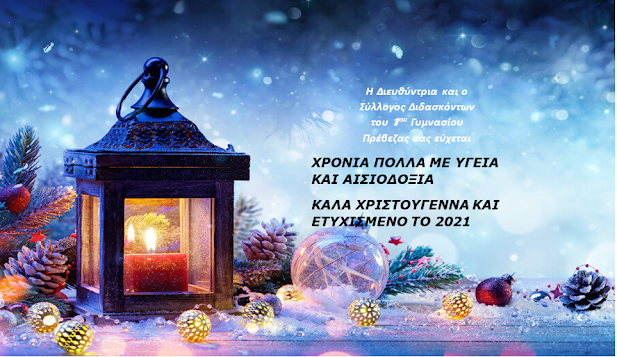 Ευχές για Χριστούγεννα και Νέο έτος 23 Δεκεμβρίου 2020 από την/ον 1ο ΠΡΟΤΥΠΟ ΓΥΜΝΑΣΙΟ ΠΡΕΒΕΖΑΣ·Δεν επιτρέπεται σχολιασμός στο Ευχές για Χριστούγεννα και Νέο έτος