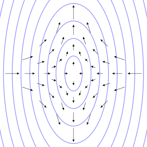 Όσο μεγαλύτερη είναι η μάζα της σφαίρας τόσο μεγαλύτερη θα είναι η τοπική καμπύλωση που προκαλεί αυτή στη δισδιάστατη επιφάνεια(υδατόστρωμα).Η καμπυλότητα αυτή σύμφωνα με τον Αϊνστάιν αποτελεί έκφραση της ύπαρξης του βαρυτικού πεδίου.Αν υπάρχει μια άλλη δεύτερη σφαίρα που κυλάει μακριά από την πρώτη, τότε θα διαγράψει μια ευθύγραμμη πορεία ενώ αν κινείται κοντά θα διαγράψει μια καμπύλη τροχιά μιας και θα κινείται στη βαθουλωμένη επιφάνεια.