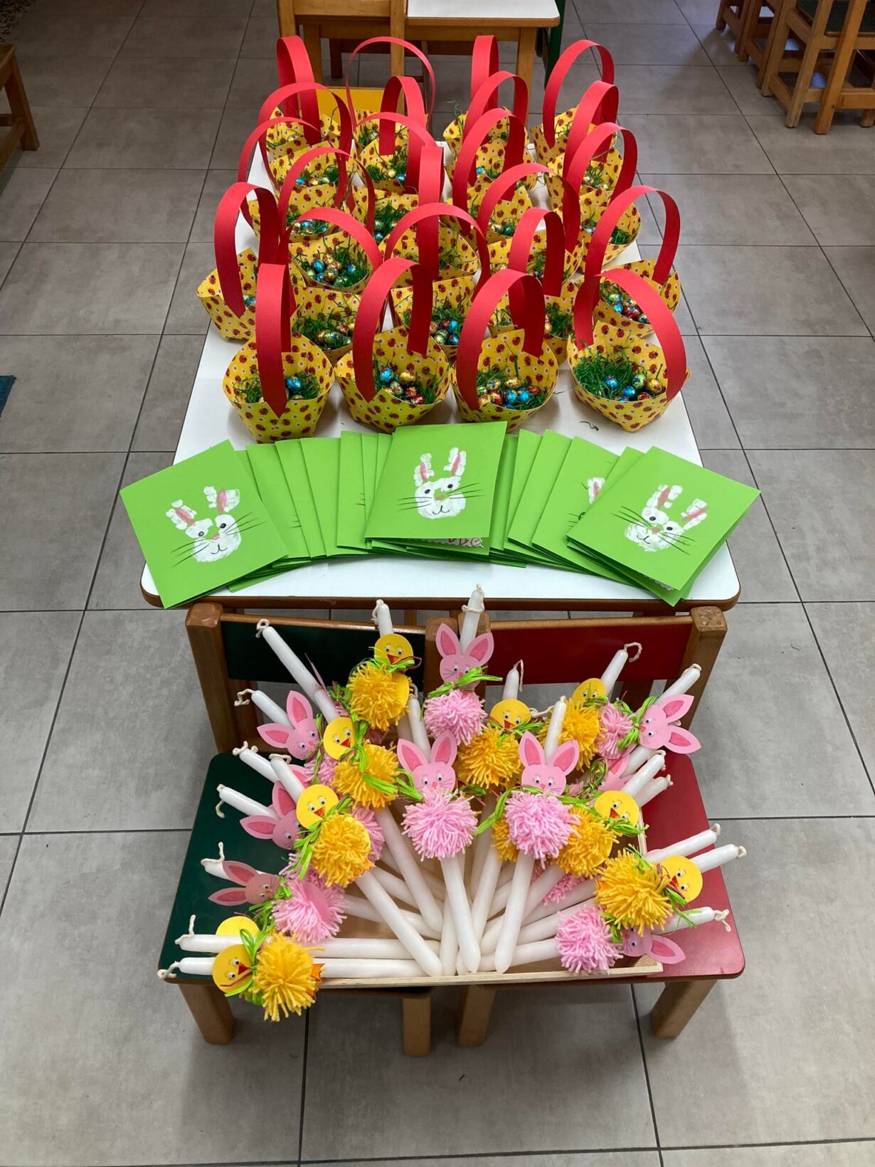 Πάσχα… Φτιάξαμε πασχαλίτσες, κουνελάκια και κοτούλες…. Φτιάξαμε και ευχηθήκαμε με τις καρτούλες μας….. Διακοσμήσαμε και βάψαμε αυγά με πολλούς τρόπους…. Φτιάξαμε τις λαμπάδες μας….. τα καλαθάκια μας…. και πολλές άλλες κατασκευές….. Καλό Πάσχα σε όλους!!!!! Και του χρόνου…..