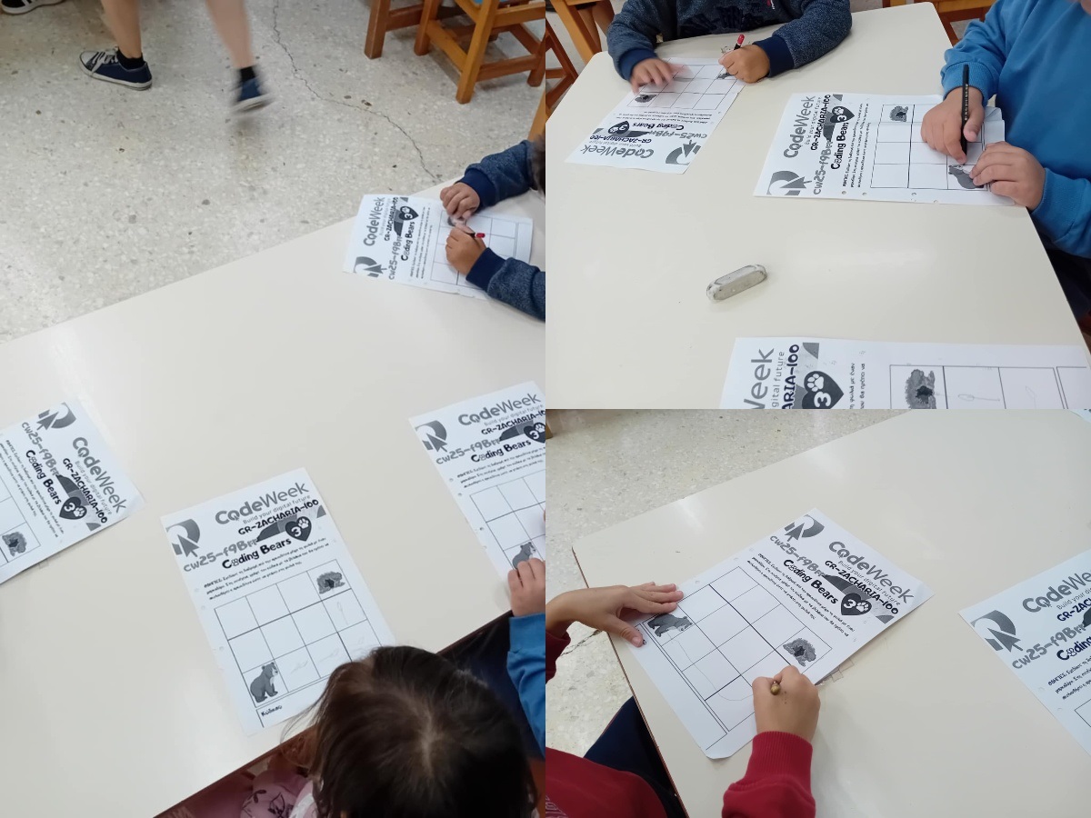 Σε τετραγωνισμένο δάπεδο, τα παιδιά “προγραμμάτισαν” ένα παιδί-«αρκουδίτσα» ώστε να φτάσει στη φωλιά του. Τοποθέτησαν βέλη κατεύθυνσης, πρότειναν διαδρομές και συνεργάστηκαν για να βρουν την πιο σωστή και ασφαλή πορεία.