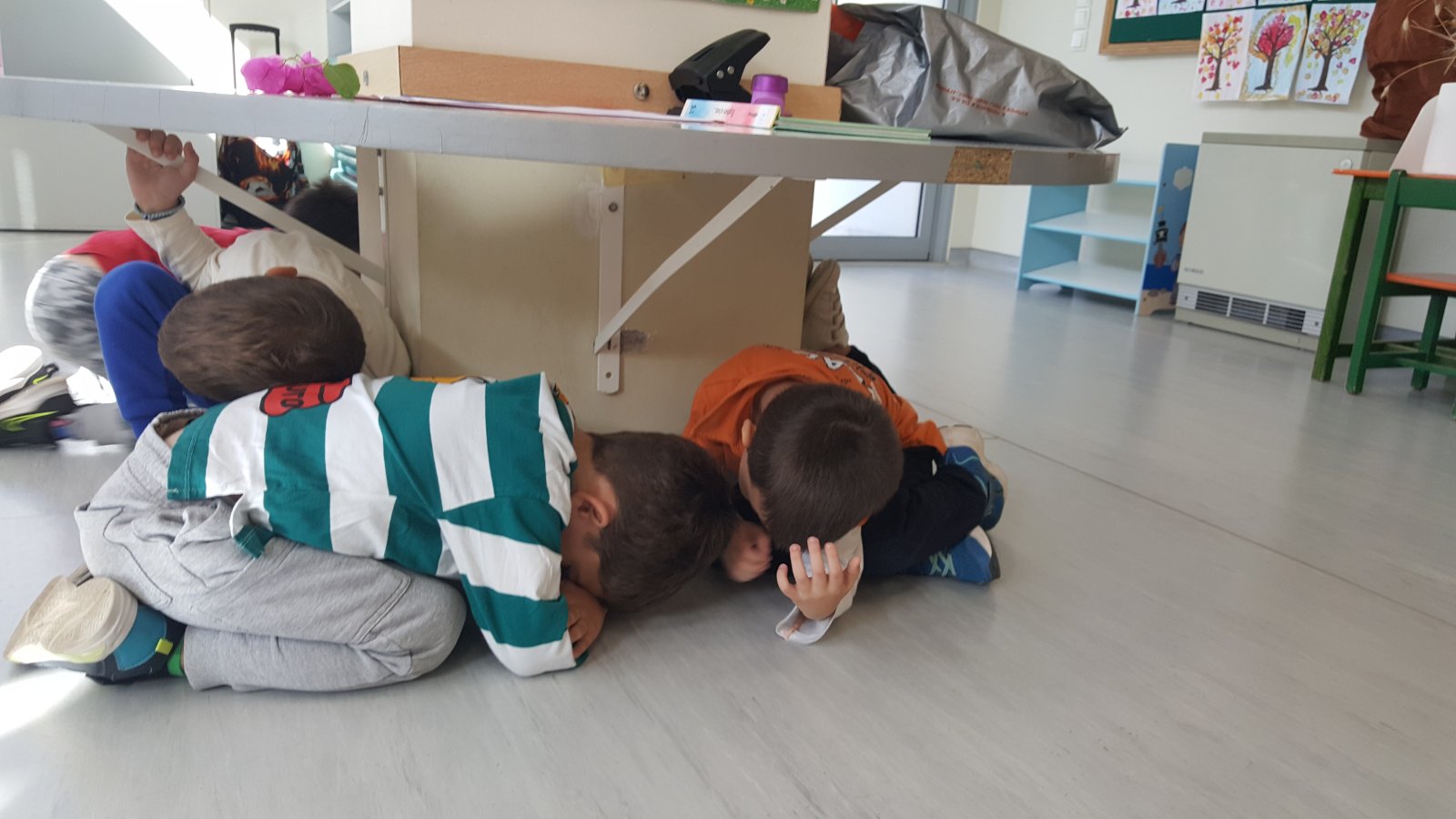 Η Προϊσταμένη του Νηπιαγωγείου, στην αρχή του σχολικού έτους και σε συνεργασία με τον Σύλλογο Διδασκόντων, προβαίνει σε όλες τις απαιτούμενες ενέργειες που προβλέπονται για την αντιμετώπιση των έκτακτων αναγκών εντός του σχολικού χώρου. Επίσης, ενημερώνουν τους μαθητές/μαθήτριες για τους βασικούς κανόνες και τρόπους αντίδρασης κατά την εκδήλωση των φαινομένων αυτών.