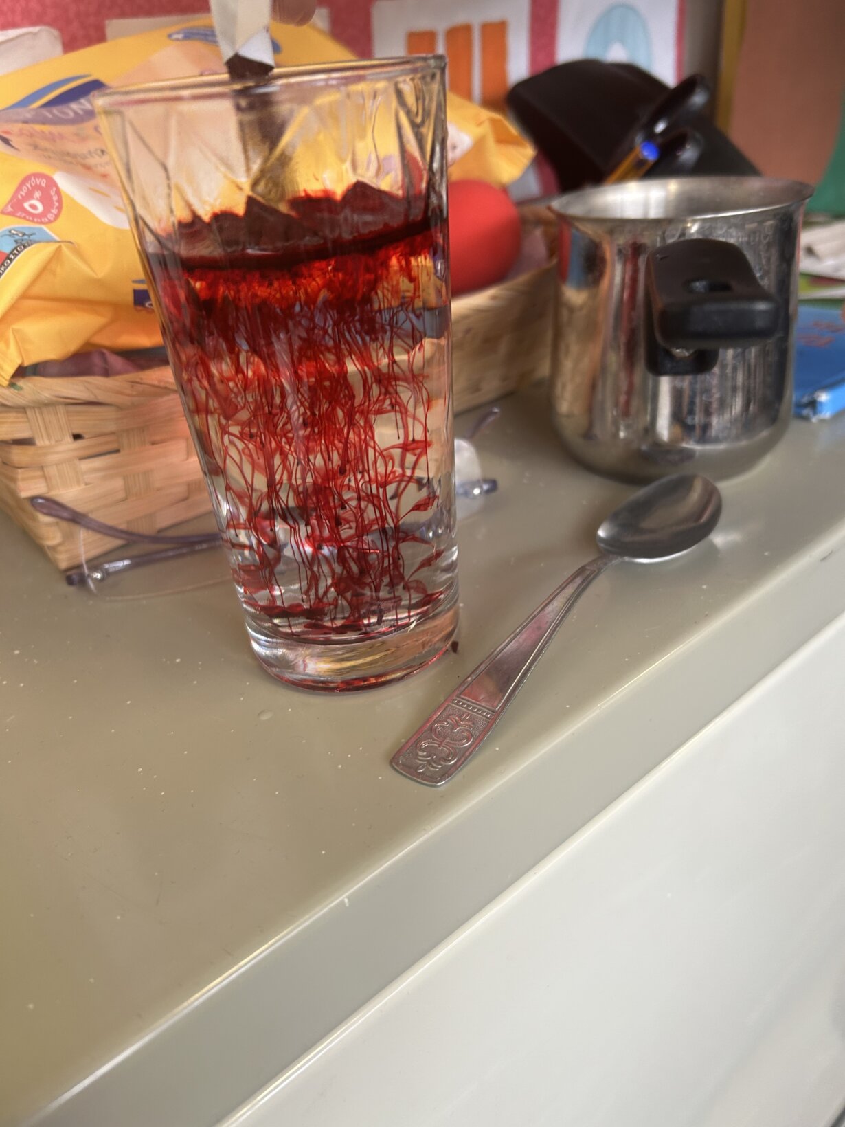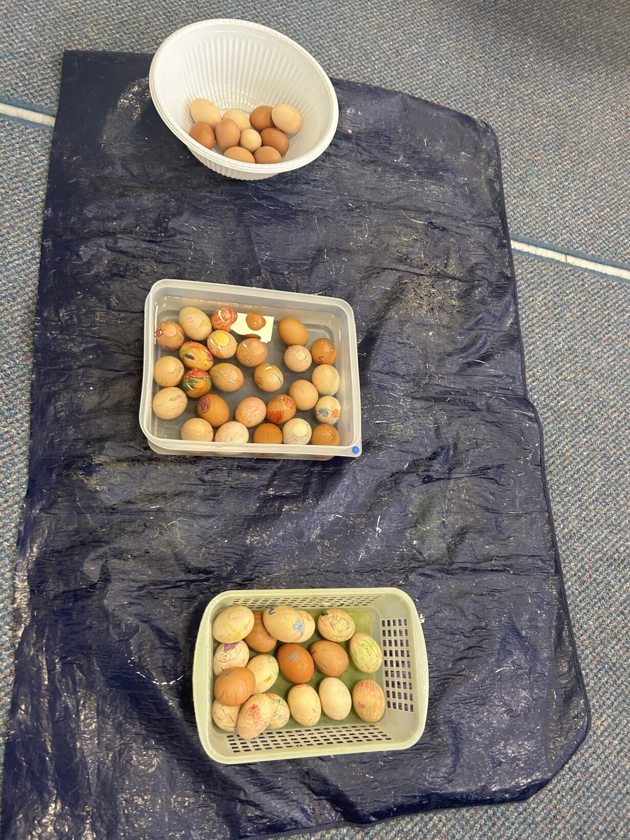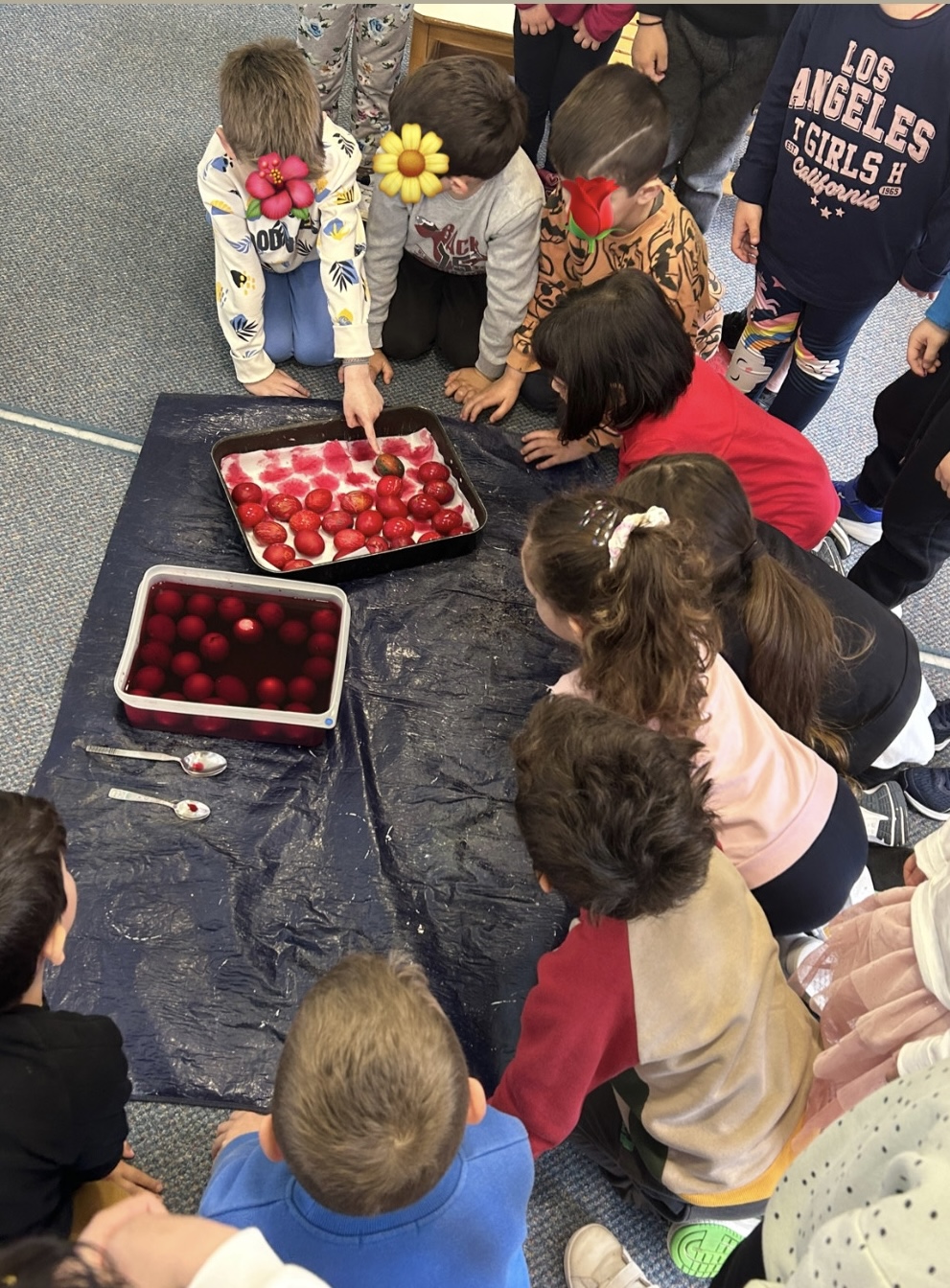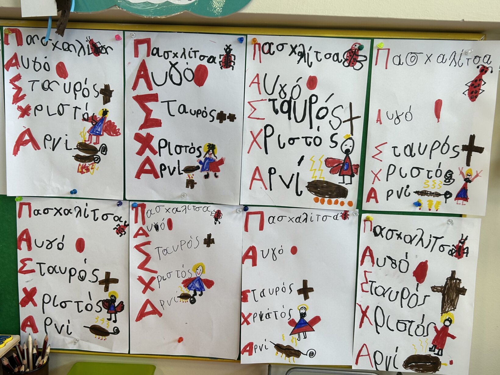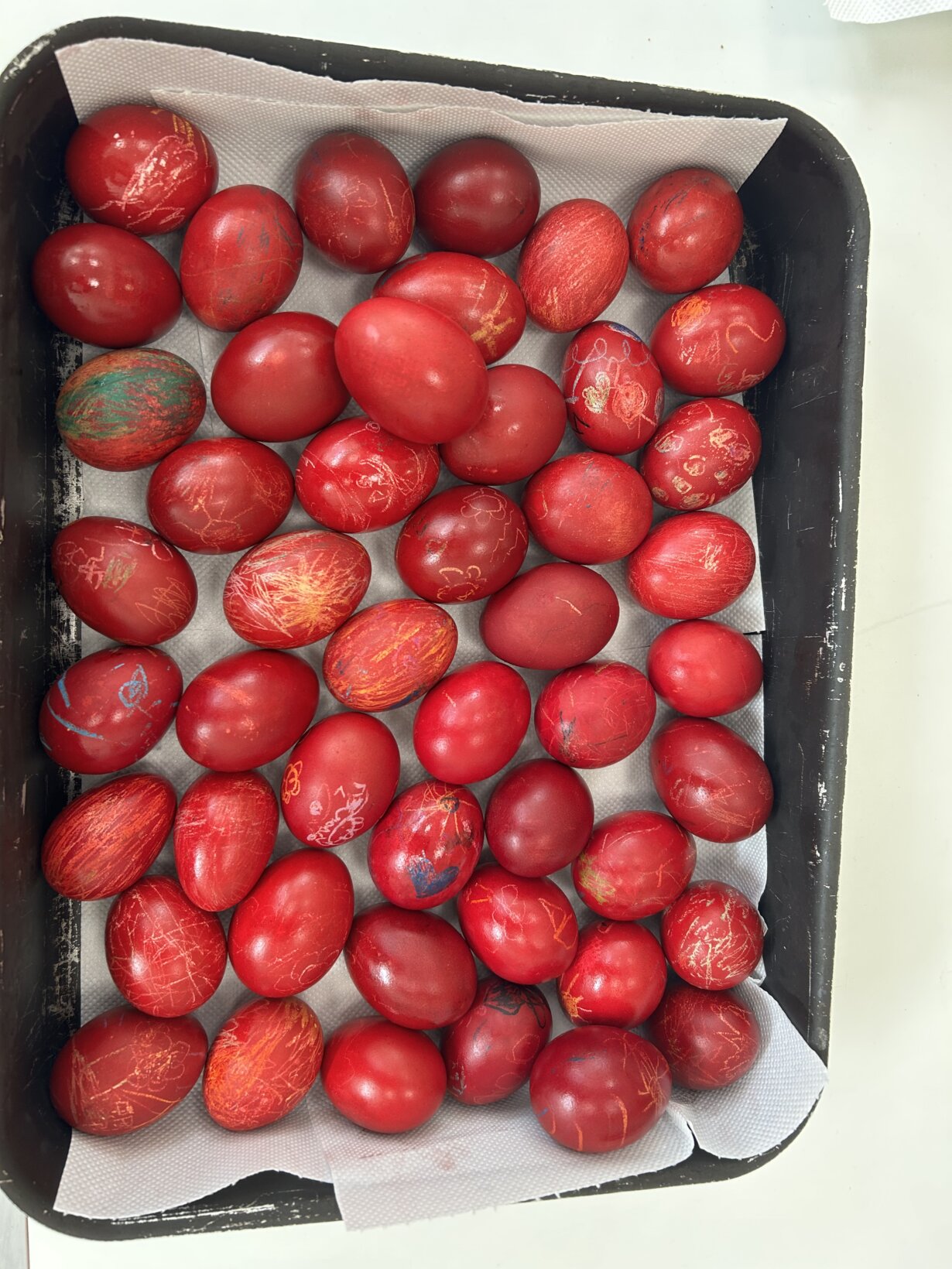 Τηρώντας το έθιμο βάψαμε κατακόκκινα αυγουλάκια αφού πρώτα τα σχεδιάσαμε.